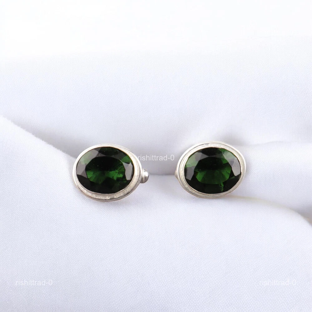 Cyber Monday Deal Green Tourmaline Stone 925 Sterling Silver Formal Cufflinks