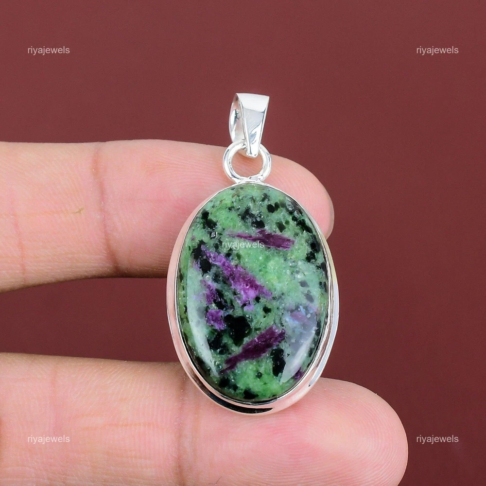 Cyber Monday Deal Sterling Silver Ruby Zoisite Gemstone Bezel Pendant Jewelry