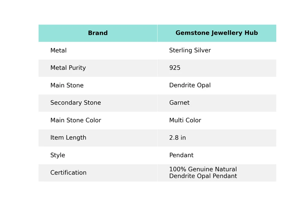 Welcome to Gemstone Treasure Hub Dendrite Opal Gemstone Pendant Handmade 925 Sterling Silver Indian Jewelry Handmade Pendant, Sterling Silver Pendant, dendrite opal Pendant, Handcrafted Pendant SKU : MP-4160 Gemstone : dendrite opal Stone Shape : As Seen In Picture Metal Purity : 925 Sterling Silver Length : 2.8 Inches Width : Inches ___________________________________________________________________ Shipping Handling - Charge - Free ( Condition apply ) Handling Time - One business day . Delivery Time - 3 to 23 Days ( Various on destination ) Postage service - (A.) India Post - Below $100 order which takes 11 to 23 days . (B.) USPS, Fedex, DHL , Aramax- Order above $100 which takes 3 to 7 days . _________________________________________________________________ Returns - 1. We provide a 100% Money Back Guarantee, excluding shipping costs, within 30 days from the date of item receipt. 2. The item must not be altered or damaged in any way shape or form. 3. Upon receiving these items your payment will be refunded. 4. Kindly reach out to us via email to obtain return instructions prior to initiating the return of merchandise. 5. Please allow up to 1 business day for all returns to receivecredit. 6. Sizing does not affect the return policy. _________________________________________________________________ Payment - We accept PayPal for Payment , should made within three days once buying or winning done , in case of late information expected . _________________________________________________________________ FAQ's - Q.(A) ARE THE ITEMS YOU ARE SELLING BRAND NEW? We exclusively offer brand-new products, refraining from the sale of pre-owned jewelry. Our entire jewelry collection is composed of 100% natural, conflict-free pieces. We do not engage in the trade of imitation or lab-grown gemstones and diamonds. Q.(B) WHAT ARE YOUR BUSINESS HOURS? Our business hours are Monday to Friday, 10:00AM to 6:00PM, excluding holidays. ________________________________________________________________ Gemstone Treasure Hub is dedicated to providing customers with exceptional handmade jewelry crafted to the highest standards of quality. We operate as both connoisseurs and manufacturers of artisanal jewelry, possessing a profound expertise in the art of elevating gemstones to perfectly align with any aesthetic preference. We are pleased to offer you the opportunity to create your own jewelry collection, adorned with authentic and exquisite natural gemstones. Our team of highly skilled artisans painstakingly crafts each individual jewelry piece, ensuring the creation of products with a unique identity that feature genuine gemstones. The jewelry articles presented on our website accurately depict the precise pieces that you will receive.