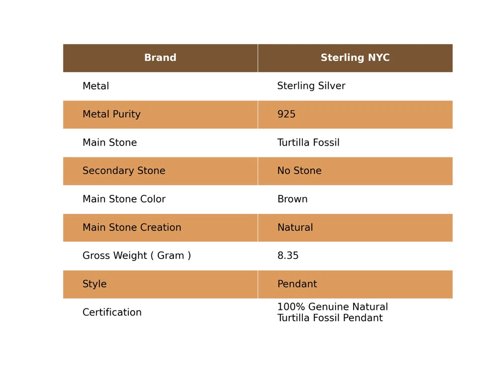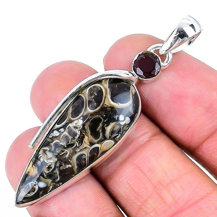 Welcome to Sterling NYC Natural Turtilla Fossil Gemstone Pendant 925 Sterling Silver Jewelry For Women Handmade Pendant, Sterling Silver Pendant, Turtilla Fossil Pendant, Handcrafted Pendant Specifications:- SKU : JS-48885 Gemstone : Turtilla Fossil Stone Shape : As Seen In Picture Metal Purity : 925 Sterling Silver Length : Inches Width : Inches ----------------------------------------------------------------------------------------------------- Experience the timeless allure of silver jewelry, a cherished choice known for its exceptional properties and countless rewards. Explore the captivating charm of its unique attributes, enveloping you with elegance and remarkable healing qualities. Immerse yourself in the enigmatic world of silver, where beauty and benefits harmoniously intertwine. Benefits: Embrace the Elegance : Silver jewelry seamlessly blends accessible luxury with timeless beauty, elevating any jewelry collection without the need for extravagant spending. A Mindful Companion : Adorn yourself with silver jewelry as a gentle nudge towards mindfulness, a tangible reminder to cherish the beauty of every moment. Amplify Positivity : Silver, known for its energy-conducting qualities, is thought to enhance the power of positive intentions and affirmations, aiding in the clear manifestation of your desires. Unleash Self-Expression : Silver jewelry, with its versatile designs, empowers individuals to express their unique style, allowing their personality to shine through every piece. Soothing Serenity : Silver's cooling properties are believed to have a therapeutic effect, bestowing a sense of relief and tranquility upon both body and mind. ----------------------------------------------------------------------------------------------------- For Mother's Day Gift For Father's Day Gift For Promise For Valentine' Day For Halloween Party For Christmas Day Gift For New Year Party For Mom For Her ----------------------------------------------------------------------------------------------------- Discover the impeccable designs tailored just for you, and receive personalized guidance by reaching out to us. Our skilled artisans meticulously handcraft each piece in our workshop, infusing them with love and unwavering attention to detail. Your visit holds immense significance to us, and we are committed to ensuring that your shopping experience is nothing short of exceptional. Thank you for choosing us; we sincerely hope you thoroughly enjoy your shopping journey. Happy shopping! ----------------------------------------------------------------------------------------------------- At SterlingNYC, exquisite craftsmanship meets premium sterling silver gemstone jewelry. Our handcrafted pieces reflect authenticity and uniqueness, a testament to our commitment to excellence. Explore our collection and create your own dazzling jewelry ensemble.