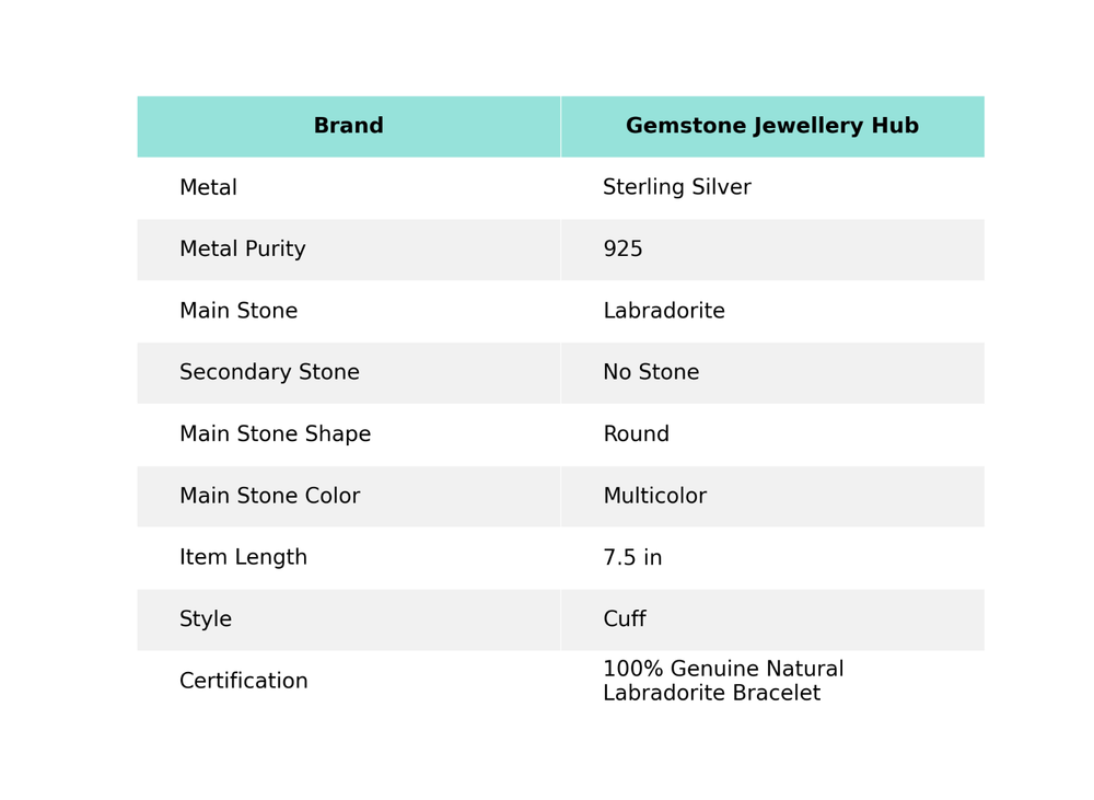 Welcome to Gemstone Treasure Hub Labradorite Gemstone Cuff Multicolor Adjustable 925 Sterling Silver Jewelry Handmade Cuff, Sterling Silver Cuff, Labradorite Cuff, Handcrafted Cuff SKU : AAC-148 Gemstone : Labradorite Stone Shape : Round Metal Purity : 925 Sterling Silver Cuff Length : Adjustable _________________________________________________________________ Shipping Handling - Charge - Free ( Condition apply ) Handling Time - One business day . Delivery Time - 3 to 23 Days ( Various on destination ) Postage service - (A.) India Post - Below $100 order which takes 11 to 23 days . (B.) USPS, Fedex, DHL , Aramax- Order above $100 which takes 3 to 7 days . _________________________________________________________________ Returns - 1. We provide a 100% Money Back Guarantee, excluding shipping costs, within 30 days from the date of item receipt. 2. The item must not be altered or damaged in any way shape or form. 3. Upon receiving these items your payment will be refunded. 4. Kindly reach out to us via email to obtain return instructions prior to initiating the return of merchandise. 5. Please allow up to 1 business day for all returns to receivecredit. 6. Sizing does not affect the return policy. _________________________________________________________________ Payment - We accept PayPal for Payment , should made within three days once buying or winning done , in case of late information expected . _________________________________________________________________ FAQ's - Q.(A) ARE THE ITEMS YOU ARE SELLING BRAND NEW? We exclusively offer brand-new products, refraining from the sale of pre-owned jewelry. Our entire jewelry collection is composed of 100% natural, conflict-free pieces. We do not engage in the trade of imitation or lab-grown gemstones and diamonds. Q.(B) WHAT ARE YOUR BUSINESS HOURS? Our business hours are Monday to Friday, 10:00AM to 6:00PM, excluding holidays. ________________________________________________________________ Gemstone Treasure Hub is dedicated to providing customers with exceptional handmade jewelry crafted to the highest standards of quality. We operate as both connoisseurs and manufacturers of artisanal jewelry, possessing a profound expertise in the art of elevating gemstones to perfectly align with any aesthetic preference. We are pleased to offer you the opportunity to create your own jewelry collection, adorned with authentic and exquisite natural gemstones. Our team of highly skilled artisans painstakingly crafts each individual jewelry piece, ensuring the creation of products with a unique identity that feature genuine gemstones. The jewelry articles presented on our website accurately depict the precise pieces that you will receive.