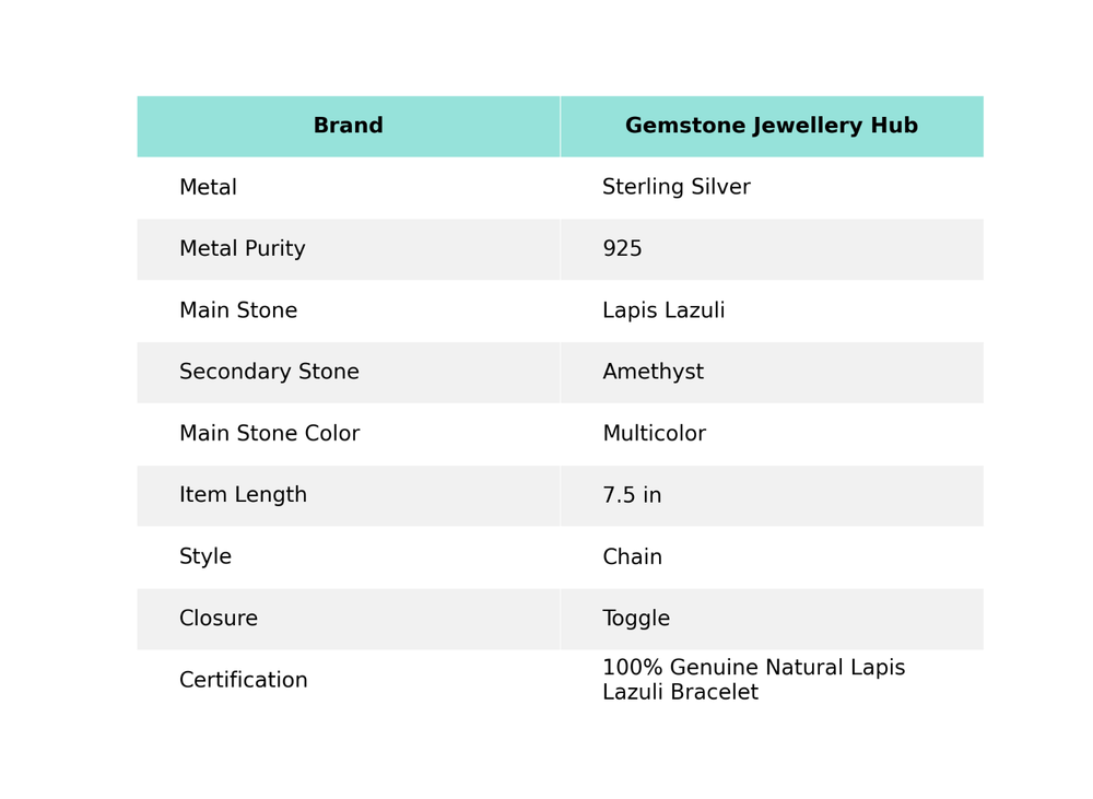 Era: Undated Main Stone Shape: As Seen In Picture Setting Style: Channel-Set Metal: Silver Main Stone Treatment: Not Enhanced Country/Region of Manufacture: India Material: Crystal, Gemstone, Stone, Metal Main Stone: Lapis Lazuli Closure: Toggle Type: Bracelet Gemstone Clarity Grade: Eye Clean Number of Gemstones: As Seen in Picture Cut Grade: Excellent Shape: As Seen As Picture Secondary Stone: Amethyst Sizable: Yes Style: Chain Brand: Unbranded Occasion: Anniversary, Birthday, Engagement, Wedding Vintage: No Seller Warranty: Yes Color: Silver Signed: Yes Antique: No Charm Type: Traditional Item Length: 7.5 in Wholesale: Yes Metal Purity: 925 Theme: Beauty, Bohemian, Ethnic, Healing, Love, Luck, Special Occasion, Halo, Love & Hearts Base Metal: Silver Customized: No Features: Engraved, Nickel-Free, Handcrafted Main Stone Color: Multicolor