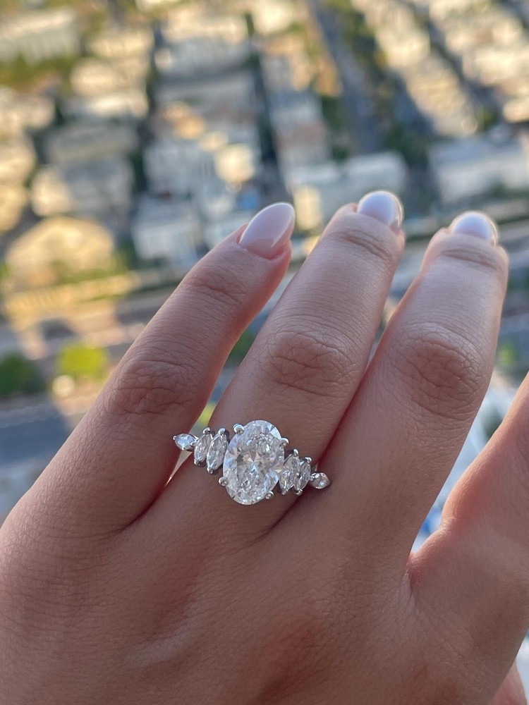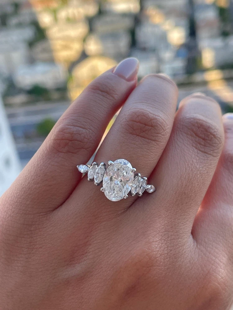 The Cyber Monday Sale offers a stunning 3.00 Carat Oval Lab Grown Diamond Women's Ring in 14k White Gold. This unique and beautiful ring is perfect for special occasions such as Mother's Day, weddings, anniversaries, birthdays, and Valentine's Day. The ring features a round white lab grown diamond as the main stone, with a solitaire setting style and engraved detail. Made with nickel-free materials and authenticated by GIA/IGI Certified, this ring is not only a stunning piece of fine jewelry but also a thoughtful and personalized gift for your loved one.