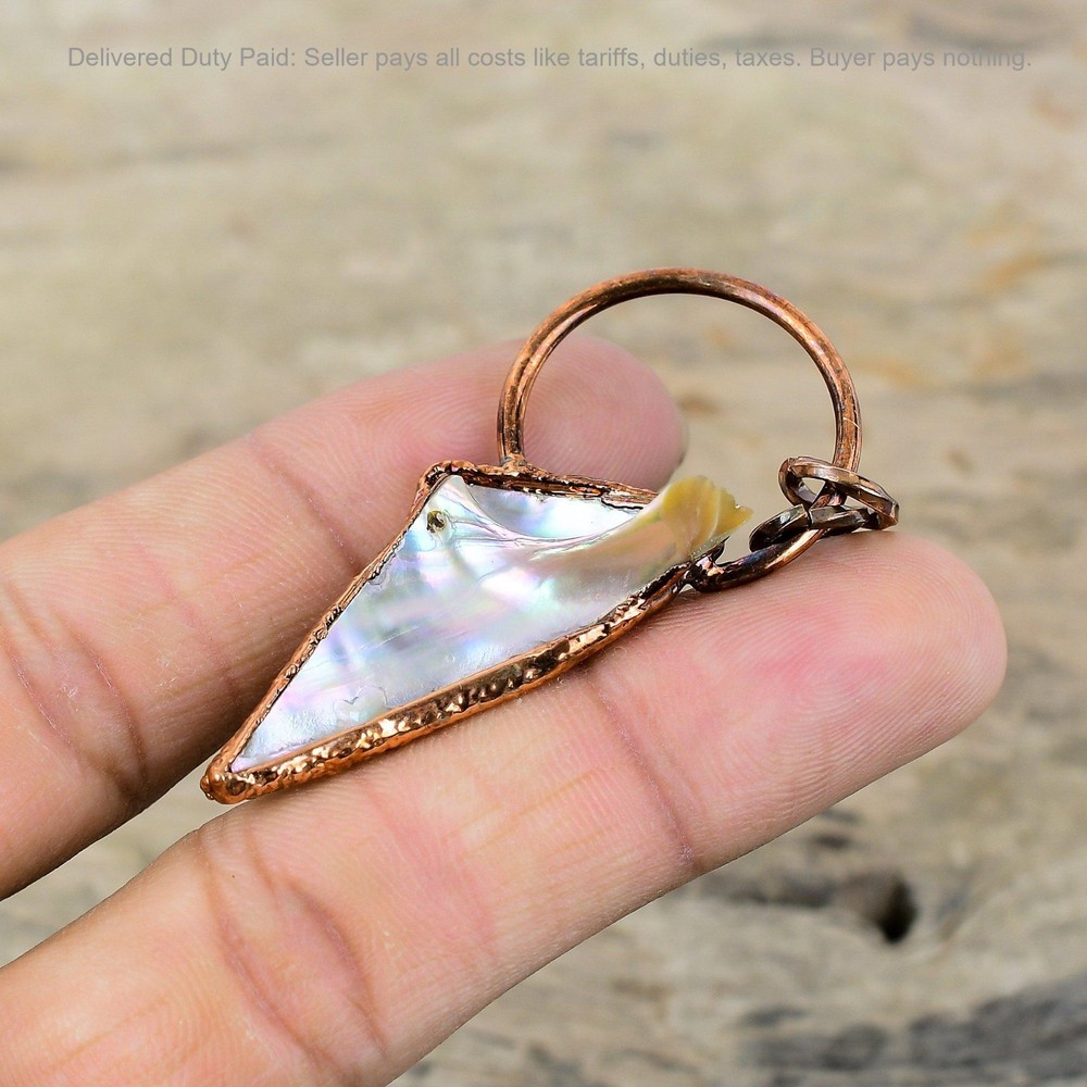 Note : Due to the natural formation of this gemstone. Slight variation in design and color are to be expected. Welcome to Silver Creation Cyber Monday Sale Natural Abalone Shell Rough New Electroformed Pendant Copper Handmade Pendant, Wire Wrapped Pendant, Wire Wrapped Jewelry, Copper Pendant, Copper Wire Pendant, Wrapped Jewelry, Wire Wrap Pendant, Wire Wrap Jewelry SKU : VZP-68 Stone Shape : Trillion Metal Purity : Unknown Copper Length : 62 Millimeters Width : 26 Millimeters Copper has been used for jewelry making for thousands of years, dating back to ancient civilizations such as the Egyptians, Romans, and Aztecs. Copper was valued for its beauty, versatility, and durability, and was often used to make everything from jewelry and coins to cookware and tools. In addition to its historical significance, copper jewelry also offers several benefits. Copper is a natural conductor of heat and electricity, which makes it ideal for energy healing and therapeutic purposes. Wearing copper jewelry is believed to have various health benefits, such as improving circulation, reducing inflammation, and boosting the immune system. Some people also believe that copper jewelry has the ability to balance energy and improve mood. For Mother's Day Gift For Father's Day Gift For Promise For Valentine' Day For Halloween Party For Christmas Day Gift For New Year Party For Mom For Her If you can't find the information you need or need some advice for your design? Feel free to contact us. We are fast to reply :) All our work is made by hand with Love and Care in our workshop Thank you so much for visiting and hope you enjoy shopping with us Silvercreations is committed to delivering the best quality sterling silver jewelry to customers. As a handmade jewelry manufacturer, we offer an extensive selection of copper gemstone jewelry that showcases the brilliance of our craftsmanship. We are an experienced handmade jewelry supplier with expertise in embellishing gemstones to suit every style. We offer you the liberty to create your jewelry ensemble with sparkling, earthy, and pure gemstones. Our Talented artisans masterfully handcraft each piece of jewelry you see here. Our pieces are made with genuine gemstones.
