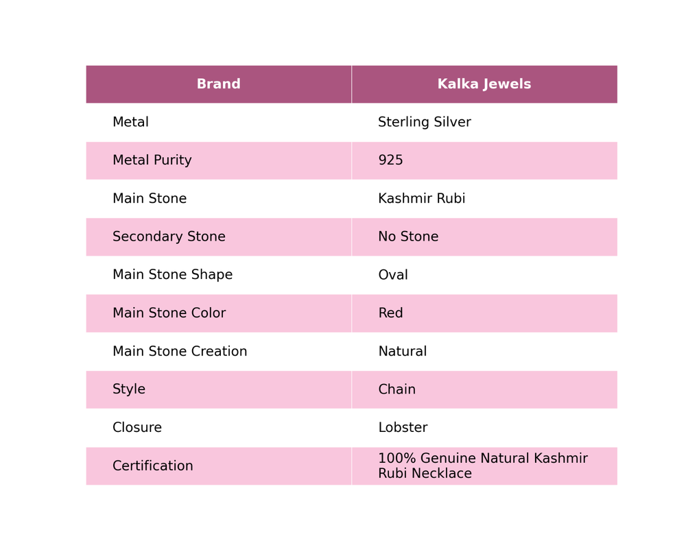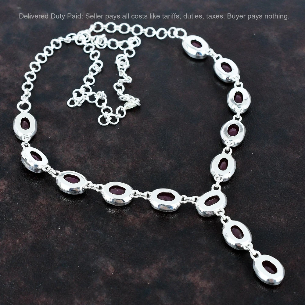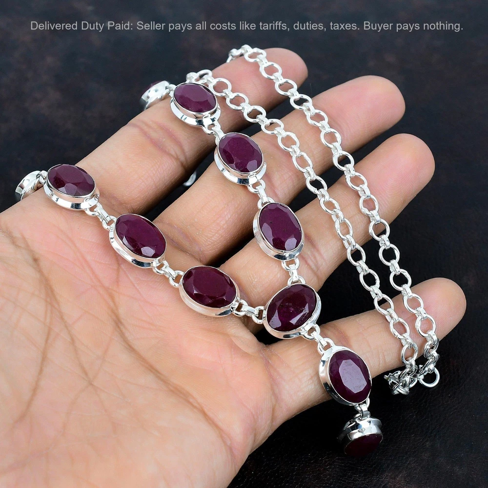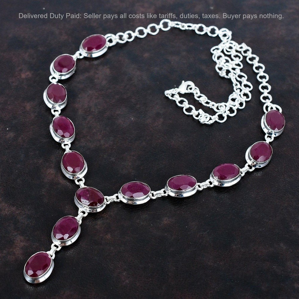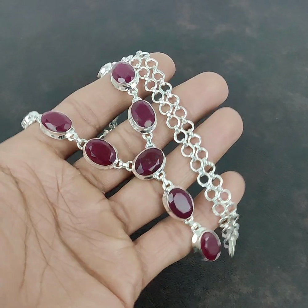 Note : Due to the natural formation of this gemstone. Slight variation in design and color are to be expected. Welcome to Kalka Jewels Cyber Monday Sale Sterling Silver Kashmir Rubi Gemstone Chain Necklace Jewelry Handmade Necklace, Sterling Silver Necklace, Kashmir Rubi Necklace, Handcrafted Necklace SKU : KN-1423 Gemstone : Kashmir Rubi Stone Shape : Oval Metal Purity : 925 Sterling Silver Necklace Length : 20 Inches Adjustable : Yes Silver Jewelry is a popular choice for many people due to its unique properties and numerous benefits. Here are some of the key properties and benefits of wearing silver jewelry: Properties: Durability: Silver is a durable metal that can withstand regular wear and tear. Malleability: Silver is highly malleable, which means it can be easily shaped and molded into various designs. Conductivity: Silver is an excellent conductor of heat and electricity. Anti-bacterial: Silver has natural anti-bacterial properties, which can help prevent the growth of harmful bacteria. Benefits: Aesthetic appeal: Silver jewelry is known for its beauty and versatility, and can be worn with a variety of outfits and styles. Hypoallergenic: Silver is generally hypoallergenic, which means it is unlikely to cause an allergic reaction in most people. Healing properties: Some people believe that wearing silver jewelry can help with various physical and emotional conditions, such as arthritis, anxiety, and depression. Spiritual significance: Silver has been used in various cultures for its spiritual and symbolic significance, and wearing silver jewelry can help to connect with these traditions. Investment value: Silver is a precious metal that retains its value over time, and investing in silver jewelry can be a smart financial decision. Overall, silver jewelry offers a unique combination of beauty, durability, and benefits, making it a popular choice for people around the world. For Mother's Day Gift For Father's Day Gift For Promise For Valentine' Day For Halloween Party For Christmas Day Gift For New Year Party For Mom For Her If you can't find the information you need or need some advice for your design? Feel free to contact us. We are fast to reply :) All our work is made by hand with Love and Care in our workshop Thank you so much for visiting and hope you enjoy shopping with us Kalka Jewels is dedicated to providing customers with high-quality sterling silver jewelry. As a manufacturer of handmade jewelry, we offer an extensive range of silver gemstone jewelry that demonstrates our exceptional craftsmanship. We are skilled in adorning gemstones to complement any style, and we give you the freedom to design your own jewelry collection with dazzling, natural, and genuine gemstones. Our talented craftsmen carefully handcraft each jewelry piece, ensuring that it is unique and made with authentic gemstones.