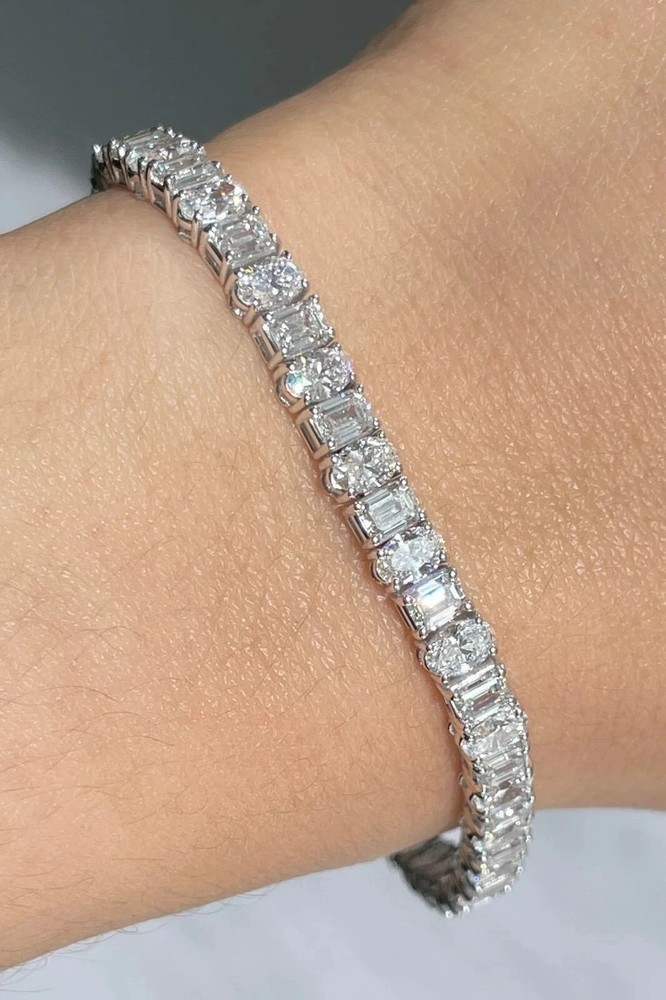 Cyber Monday Special! The Lab Grown Diamond Christmas Tennis Bracelet is a stunning piece of fine jewelry, featuring round white diamonds set in 18K white gold. This elegant bracelet is perfect for special occasions like engagements, weddings, anniversaries, or even as a luxurious Christmas gift. With a total carat weight of 9.50ct-10.00, this bracelet exudes beauty and luxury. The adjustable and nickel-free design ensures comfortable wear, while the handmade craftsmanship adds a touch of uniqueness. The charming Tennis style and perfect fit make this bracelet a perfect choice for anyone looking for a beautiful and timeless piece.