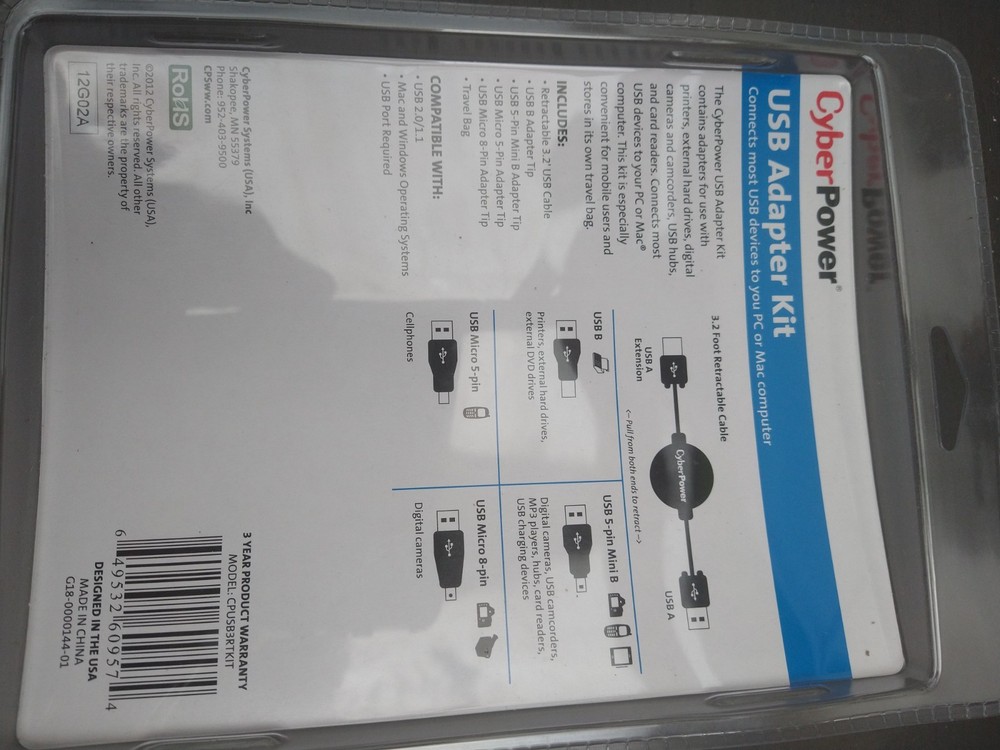 The Cyber Power USB Extension 3.2ft is a versatile cable kit that includes a 3.2ft USB A male/female extension cable along with 4 USB adapter plugs. With a connection split/duplication of 1:1, this black cable is perfect for expanding the reach of your USB connections. The retractable feature makes it easy to store when not in use, while the various connector options like USB A, Micro USB, and USB mini-B ensure compatibility with a wide range of devices. The output voltage of 5V makes it suitable for powering a variety of USB peripherals.