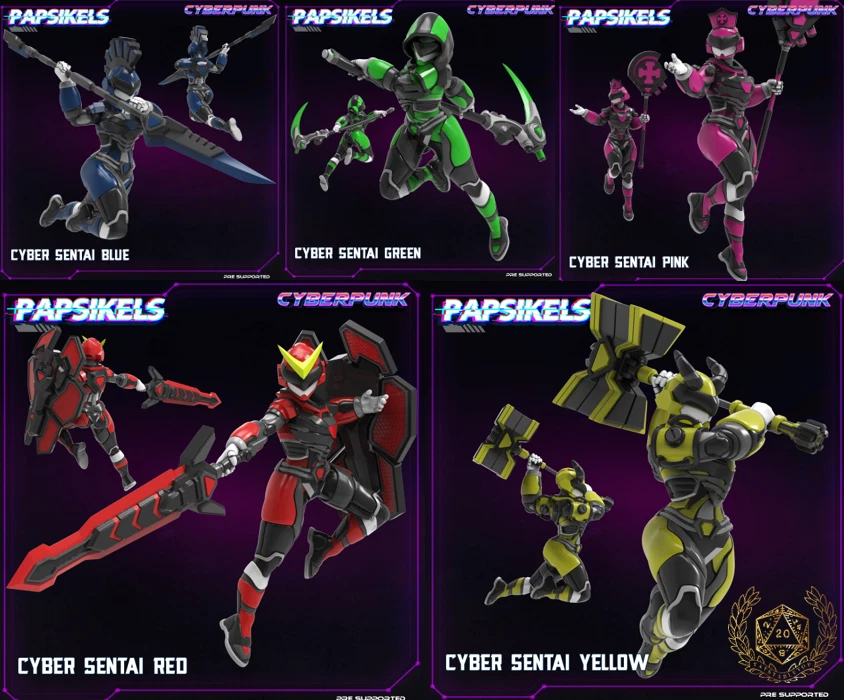 Cyber Sentai Squad | Cyborg Heroes | Papsikels | 32mm scale Choose your model / character or take the whole lot for a bargain price. · · If you haven’t heard of Papsikels before, two things, 1. Where have you been for 4 years. And 2. Please go take a look at the range, he is the absolute master of re creating our dreams from the 90s and that era, and re imagining them into our favourite tabletop game systems. Whatever you play, its pretty much covered by the range on offer. Please do check out all the sections in the store as you never know what your going to miss, there is some amazing stuff in there. · Everything is sculpted in that style that is signature to Papsikels. And the sculpts are second to none as you can see from the pics. · Each models is supplied with an appropriate scenic base if pictured, or a blank base of the same size of there isn’t one pictured (rare). · Tatstabletop is the original and best place to buy these Miniatures in the AU and NZ but if your anywhere else in the world, we can ship to you too! · Tatstabletop promises to deliver premium quality prints, at affordable prices, directly to your gaming table, nothing less than that is acceptable to us. · All models will be supplied with appropriate blank base relevant to the game system and scale. · Printed for you using the latest technology and achieving 12K resolution prints (it doesn’t get any better). · Washed and cured using a unique method to avoid all the usual headaches from resin models – Do you hate receiving glossy looking models? Models with clearly visible layer lines and swirl marks? Models with weird white marks on them that seemingly can’t be removed? Worry NOT! None of that here when you shop with Tatstabletop. · Unique support removal procedure, resulting in next to no aftercare required on your part, may be the odd one. And no visible support marks left on your models. · Please read our reviews as we pride ourselves on Quality and value offering to you, and they should back up the above statements. Only the best quality offered. Also, you can visit Tats Tabletop Facebook page where we post regular photos of our prints to show the quality we produce. https://www.facebook.com/61553069981805. · If you have any questions, please reach out either via the message system on Etsy or message me on the Facebook page. As I appreciate buying from an unknown on ebay or etsy can be more a feat of trust than transaction, I speak from experience. I want to build trust before a purchase is made, or if you’re a return buyer, you already know the service we offer. · Please be aware, these are 3d printed models in resin, Resin is a potentially dangerous chemical when not cured, which is why we take the effort to cure these prints in a specific machine, however you should exercise caution when handling. · As these are miniature models, they can come in small parts and pieces, designed that way for the printing purposes. Small parts must be kept away from Children. In order to assemble your miniature or model kit, you will require the use of super glue, and should always follow the instructions shared by the manufacturer of the brand you are using. · These models are supplied un painted and unassembled, and they arrive in the grey as advertised. · THANK YOU! , genuinely thank you for looking and possibly purchasing, it means the world to me and I hope you enjoy.
