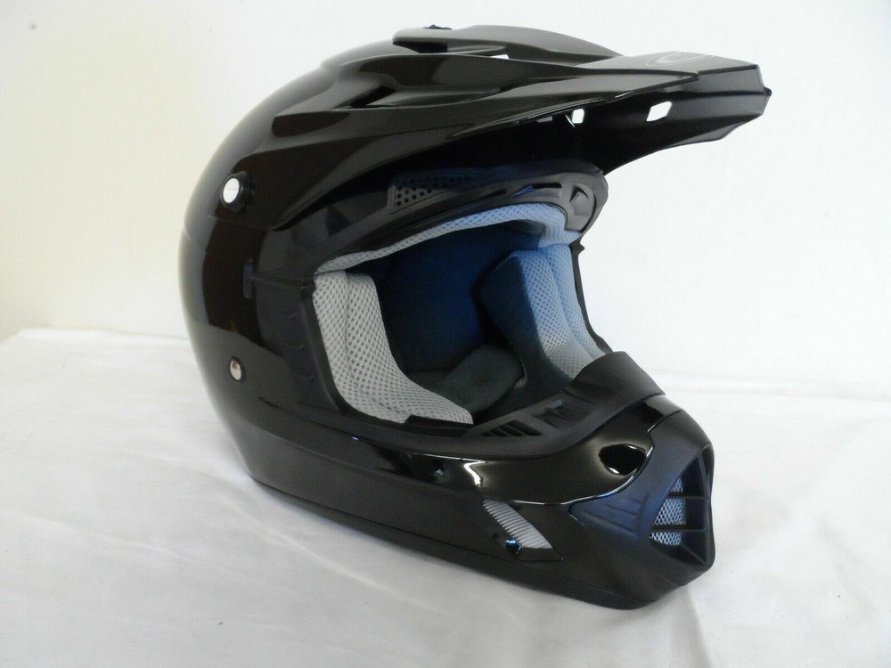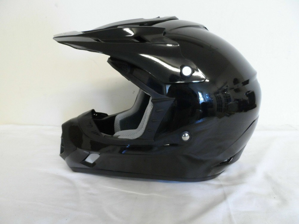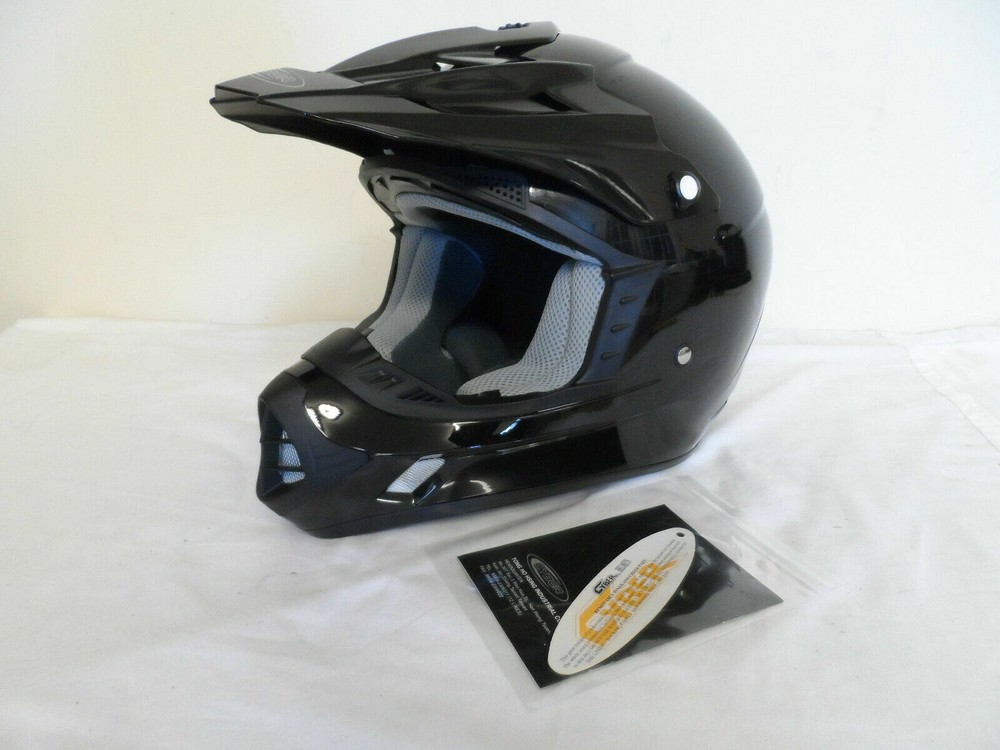 Thanks for Checking out our Store! Up for sale is a Brand New custom return Cyber UX-24 Helmet. See condition report below. Impact resistant adjustable visor. Removable and washable interior. Double D-ring retention system. Meets or exceeds D.O.T. and ECE standards. Sold individually. SIZE : LARGE COLOR : BLACK Manufacturer Part # Condition: Brand New..never used. Returned because the helmet has some sticky glue residue on the top of the helmet near the edge of the visor. Appears to be a few light scuffs as well from the visor rubbing against the helmet. There are also some areas of light hairline scratches but they are quite hard to notice. Too light to pick up on camera. See photos. Thanks for Looking and Good Luck! Don't forget to check out our other Auctions Along with Our Ebay Store for More Great Deals! CY0393 Flat rate shipping applies only to lower 48 states.
