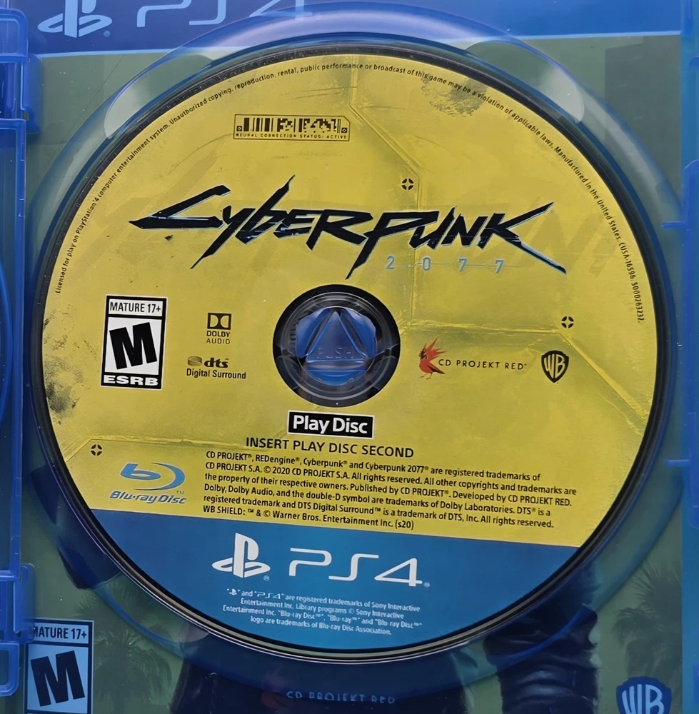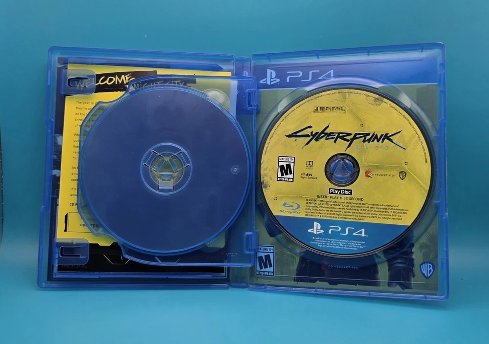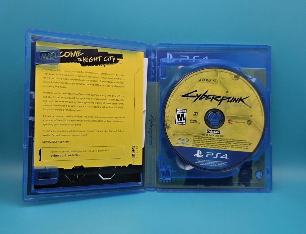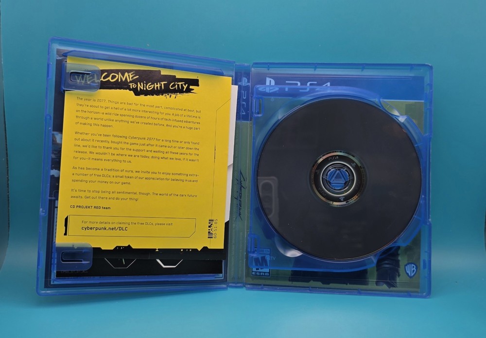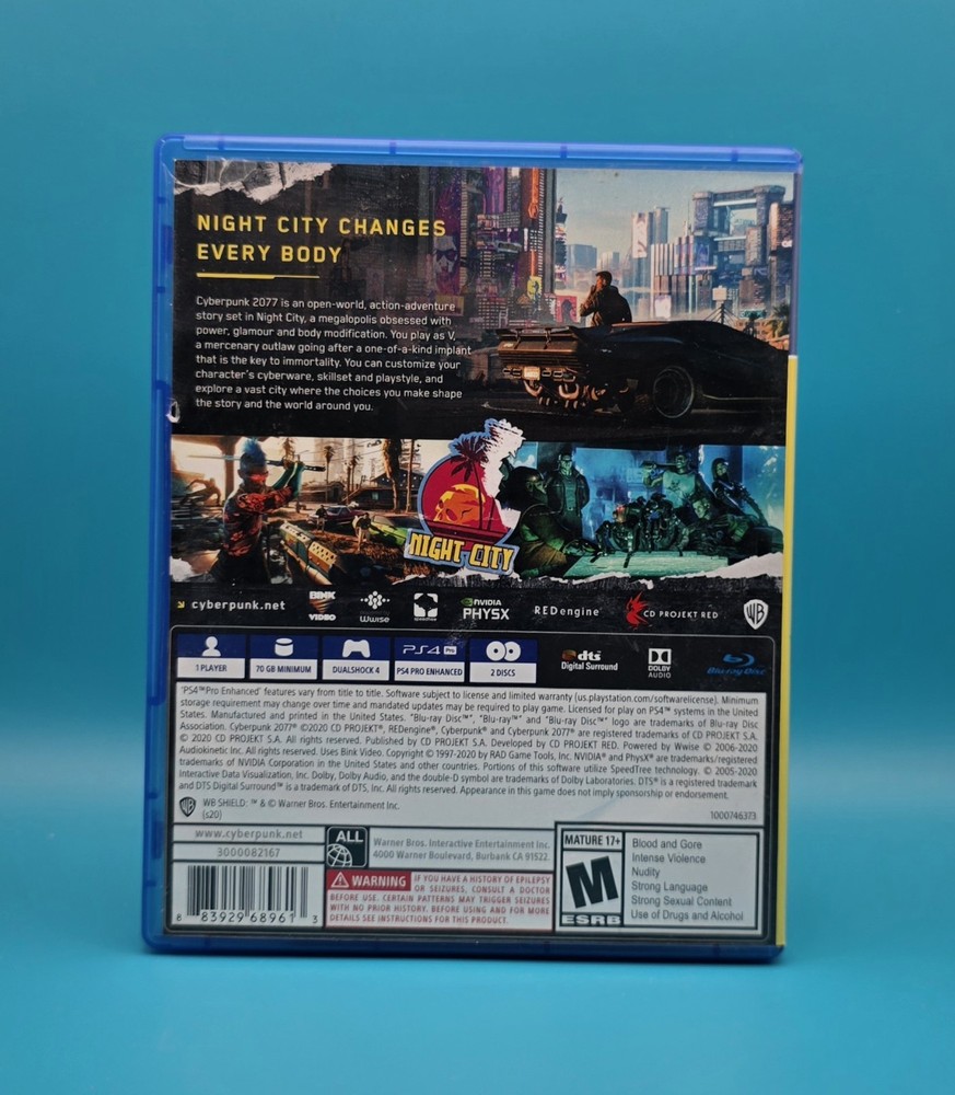The product is a complete in box (CIB) copy of Cyberpunk 2077 for the Sony PlayStation 4. This mature-rated game, published by Warner Bros. Games, offers immersive gameplay in a futuristic cyberpunk world. Players can delve into the gritty depths of Night City, a dystopian metropolis filled with factions, gangs, and powerful corporations. With a mix of action, storytelling, and customizability, Cyberpunk 2077 provides a captivating experience for fans of the genre.