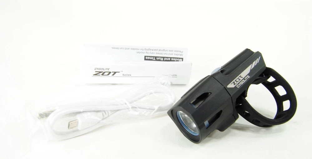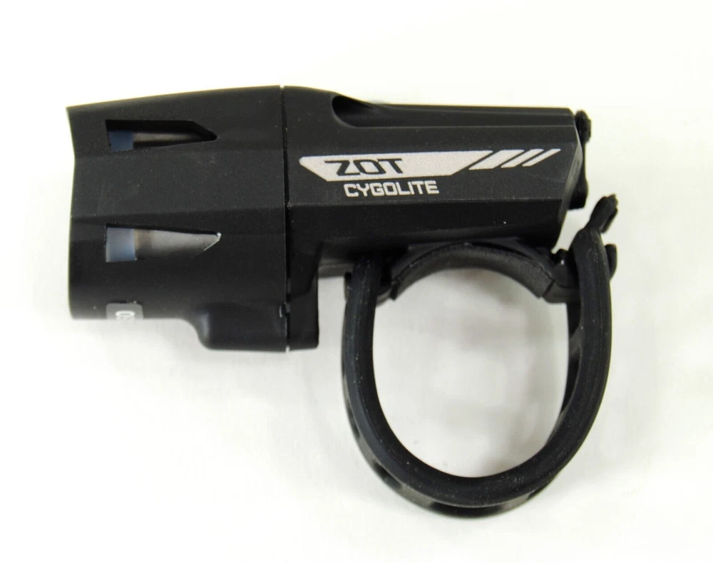 Take on any road with the aggressively powerful and sleek Zot Series from Cygolite. The Zot provides extra wide, long range coverage at night, while its lightning-like flashes make you stand out in broad daylight, to ensure safer cycling at all times. Every bit the road cyclist's light, it uses a low profile flexible mount designed to strap quickly and easily to most handlebars including aerobars. Eight lighting modes for use on roads and commuting Features Enhanced Cycling Optics that cast an extra wide and long range beam compared to conventional lighting optics Water-resistant design for all riding conditions Side light ports for 180-degree visibility Low battery indicator and light memory mode saves the mode the rider is using when the light is turned off Lockout function prevents accidental light activation