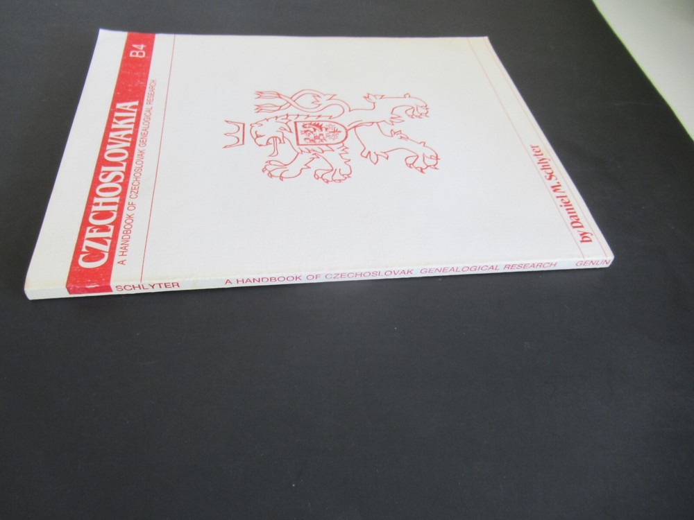 Publication Name: Handbook of Czechoslovak Genealogical Research gtin13: 9780912811062 Features: Reprint Publisher: Genun Publishers ISBN: 9780912811062 Subject: Genealogy & Heraldry Subject Area: Référence Number of Pages: 131 Pages Type: Not Available Language: English Format: Trade Paperback Seller Notes: “THIS IS THE ITEM YOU WILL BE RECEIVING. PLEASE VIEW THE PHOTOS TO DETERMINE THE CONDITION.” Author: Daniel M. Schlyter