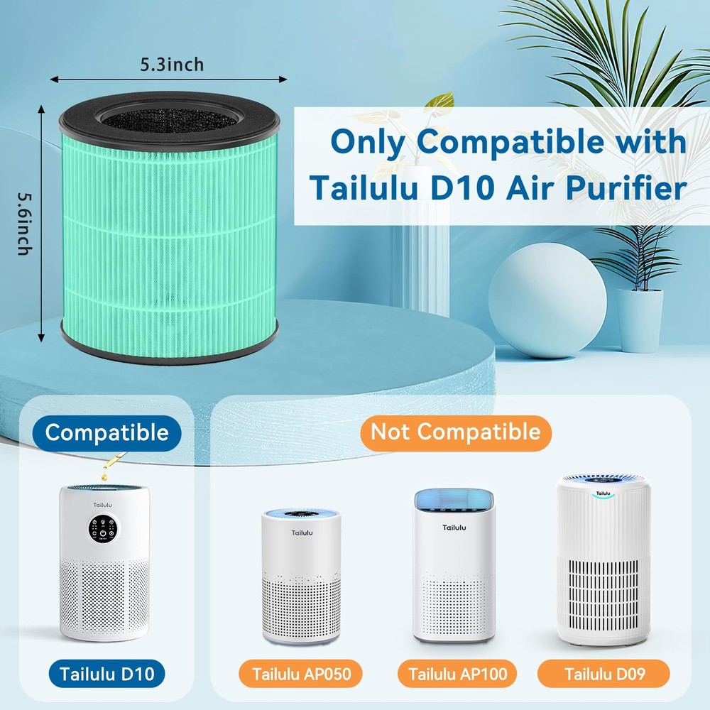 [D10 Filter] Exclusively designed for D10 purifier to maintain its peak performance. With cost-effective price to save much cost for your all-year-round cleaning need. It is recommended to replace every 3-6 months depending on the usage and quality. [D10 Filter] Exclusively designed for D10 purifier to maintain its peak performance. With cost-effective price to save much cost for your all-year-round cleaning need. It is recommended to replace every 3-6 months depending on the usage and quality. [Superior Quality] Our D10 filter is made of premium non-woven fabric and , ensuring high-efficiency cleaning performance and safe to use for your whole family. [Better , Better Life] The filter features 3 in 1 filtration System: Pre-filter, H13 true HEPA filter, and filtration system work together to purify 99.97% of 0.3-micron particles from dust, pollen, PM 2.5, pet dander, smoke, cooking smell, hair and odor. Effectively improve indoor quality and create a healthy environment. [Easy to Replace] Simple to replace the filter as the steps below: 1. Flip the purifier upside down and rotate the bottom cover 2. Remove the cover and the used filter, and replace them with a new filter 3. Place the bottom cover back onto the machine and twist it clockwise until you hear it click in place 4. Press and hold for 3 seconds to reset the filter indicator. [Buy with Confidence] Filter is sealed to protect their life. Remove the plastic packaging before the filter if you encounter any issues with your filter or purifier, you are welcome to freely. We’re ready to help you anytime.