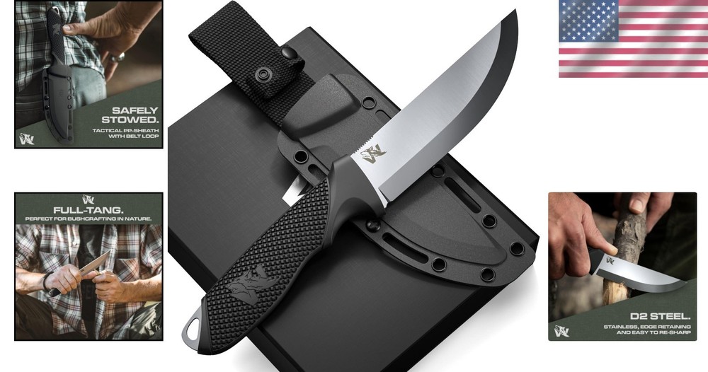 W-SCANDI Full Tang D2 Steel Survival Knife with Tactical Sheath for Outdoors ‹ › ‹ › ‹ › ‹ › ‹ › ‹ › ‹ › ‹ › W-SCANDI Full Tang D2 Steel Survival Knife Your Ultimate Companion for Outdoor Adventures Features: High-Quality Material: Crafted from a single piece of robust D2 steel (60 HRC) renowned for its exceptional hardness and wear resistance, ensuring durability even in rugged environments. Tactical Sheath: Comes with an elegant tactical sheath made from durable polypropylene, securely locking the knife in place, and can be comfortably hung on your belt for convenient access. Razor-Sharp Blade: The fine-grained structure of D2 steel allows precise and sharp edge formation, handling all outdoor tasks with ease. Maintain its sharpness with a grinding angle of 20 to 25 degrees. Outdoor Adventure Ready: Essential for every hiking, hunting, or camping enthusiast, this reliable knife partners effortlessly with you in all weather conditions and outdoor activities. German Quality Standard: Meticulously crafted with outstanding workmanship, products assure you of exceptional quality and dependable support for outdoor enthusiasts. Benefits: Robust and durable construction for a lifetime of reliability. Convenient and secure sheath design for quick access. Precision-engineered blade to tackle tough outdoor tasks effortlessly. Perfect for extreme outdoor conditions, providing you peace of mind. A symbol of superior craftsmanship that outdoor lovers trust. Why Choose the W-SCANDI Survival Knife? In the world of outdoor adventures, your tools can make all the difference. The W-SCANDI Full Tang D2 Steel Survival Knife combines exceptional durability with superior craftsmanship, making it a must-have for anyone serious about their outdoor pursuits. From hiking and hunting to camping, this knife is designed to handle the rigors of nature with style and efficiency. Choose the W-SCANDI Survival Knife and elevate your outdoor experience with the confidence that comes from superior German quality. Order now and prepare to conquer the great outdoors! Shipping Free & Fast Shipping - We offer free shipping to most of the USA with a normal delivery time of 3-10 businessdays. However, due to various situations, additional delivery time (up to 3 weeks) may be required for some items. Alternative Carriers - We may use alternative carriers (e.g. USPS, FedEx, UPS, etc.) to ensure your package arrives safely and on time. Due to the use of multiple carriers, we are unable to provide a tracking number automatically. Handling Time - Orders are processed and shipped within 1-5 business days of receiving cleared payment. Shipping Restrictions - Shipping to Alaska, Hawaii, Puerto Rico, Guam, and other US territories may incur shipping charges or delivery restrictions. Please contact us before ordering, or your order can be refunded/cancelled. State Restrictions - There may be restrictions based on your state of purchase. For example, certain items may not be shipped to California due to state regulations. Contact for Tracking Updates - If you require tracking updates or have any concerns about the delivery of your order, please feel free to contact us, and we will be happy to assist you. Return Please see our ebay return policy. We do not accept return on most products. This is to avoid customers mis-using ebay returns. All sales are final. Please be sure to check the return policy listed at the top of the listing. In rare cases, we may accept returns, if the buyer pays both ways shipping and 20% restocking fee. If you are un-sure of return policy of a particular item, please ask before buying. Payment We accept all major credit cards, PayPal, and Apple Pay for your convenience. Your payment information is secure and encrypted to ensure a safe and seamless transaction. Please complete your payment within 3 days of purchase to avoid any delays in shipping. Feedback Your feedback is extremely important to us. We strive to provide the best products and customer service possible. If you are satisfied with your purchase, please take a moment to leave us a positive review. If you have any concerns or issues with your order, please contact us before leaving negative feedback. We are committed to resolving any problems and ensuring your satisfaction. Contact Us If you have any questions or concerns, please feel free to reach out to our customer support team. You can contact us through the eBay messaging system. We are available Monday to Friday, 9:00 am to 5:00 pm EST, and we will do our best to respond to your inquiry within 24 hours. Buy it now and enjoy a pleasant shopping experience! Year: Not Set Type: Boot,Bowie,Combat,Everyday Carry,Hunting,Survival,Throwing Tang: Half,Three-Quarter,Full,Rat-Tail,Push,Encapsulated,Hidden Features: Basic Multifunction,Colored Blade,Gut Hook,Hollow Handle,Lanyard Hole,Sheath Included Brand: Unbranded Blade Color: Black Handle Material: TPE Blade Material: D2 Steel Dexterity: Ambidextrous Blade Length: 4.6 Inches Blade Type: Straight Blade Edge: Plain Original/Reproduction: Not Set Country/Region of Manufacture: Not Set