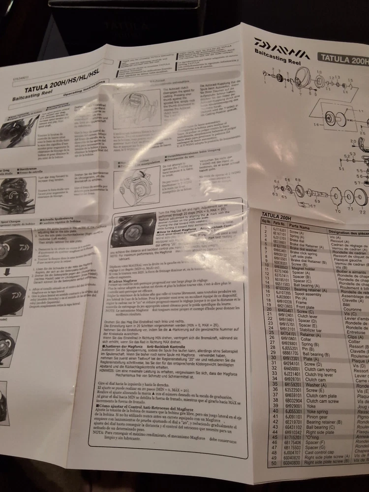 DAIWA TATULA TAT200HS BAITCAST REEL NEW IN BOX WITH INSTRUCTION/PART LIST AS PICTURED I BOUGHT THESE BRAND NEW 2 YEARS AGO AND NEVER TOOK THEM OUT OF THE BOXES. SHIPPED USPS GROUND ADVANTAGE