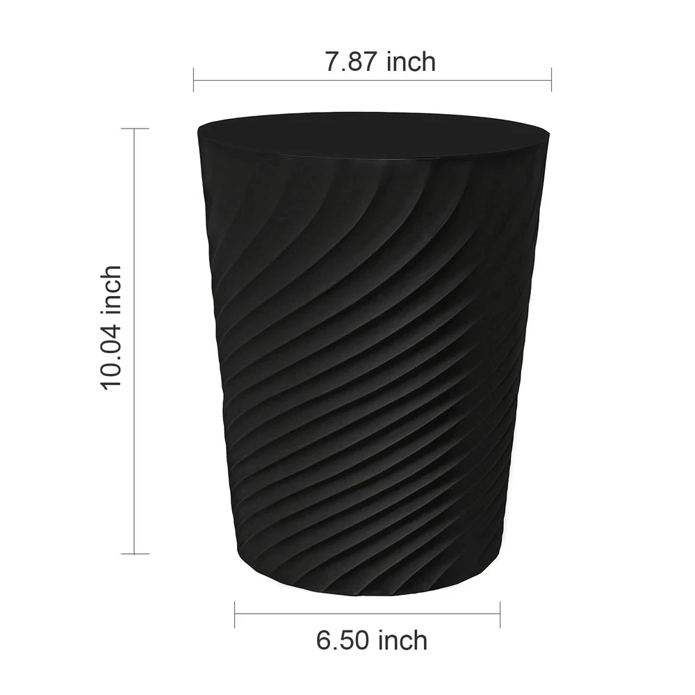 1.8 Gallon Small Trash Can Wastebasket Recycling Bin Slim Profile for Compact Spaces Bathroom, Office, Bedroom Screw thread shape design,, simple and fashionable. (US Granted Patents NO:D969436S) A stylish trash can with a modern slim design that looks great and easily fits into narrow openings and odd spaces in your bathroom, bedroom or office Made of super-strong polypropylene, trash cans are durable, easy to wipe clean with a damp cloth Space efficient,stylish,durable,economical,an convenient and effective way to recycle. Ideal for home office, bedrooms, craft rooms, dens, and any other room that requires a decorative waste can; Also great for college dorm rooms, apartments, condos, RVs and campers Measures: 7.8" diameter x 10" high, 1.8 gallon/ 6.8 liter capacity