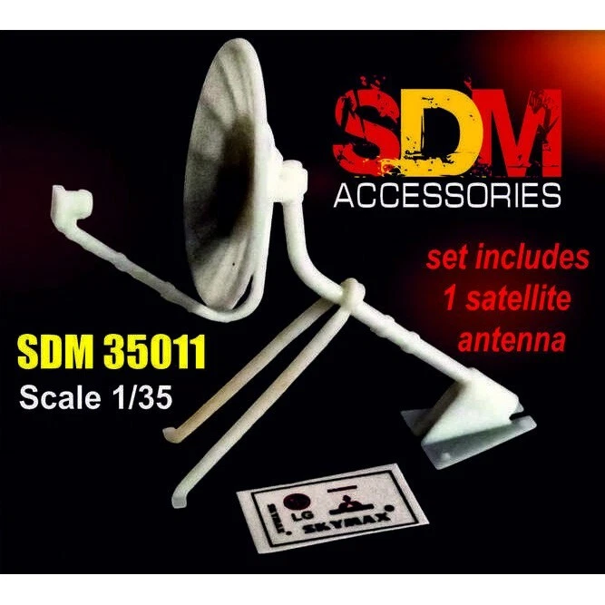 DAN Models SDM 35011 Scale kit 1:35 Accessories for diorama. Satellite antenna - Plastic Model Kit ---------------------------- If you have a desire to procure a GREATER NUMBER OF ITEMS THAN WHAT IS CURRENTLY DISPLAYED, kindly let us know, and we will happily modify our offerings to suit YOUR EXACT QUANTITY NEEDS. ---------------------------- Scale: 1:35 Manufacturer: DAN Models (Ukraine) Country/Region of Manufacture: Ukraine Condition: New in Box Features: Kit Accessories for diorama. Satellite antenna in scale 1/35 This set includes: 1 satellite antenna decal (sticker) Glue and paint are not included ---------------------------- Scale model accessories are a wide range of parts, spares, and components that can help you make your model even more realistic and detailed. In our catalog, you will find everything you need to assemble and repair model cars, airplanes, ships, tanks, and weapons. Our accessories are made from high-quality materials and meet all standards. We offer a wide range of models and sizes so you can find what you need. Buy scale model accessories in our store and make your model even more unique!