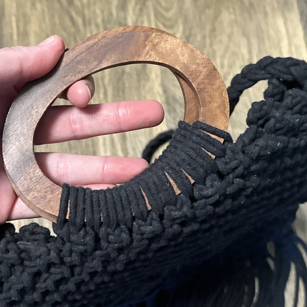 This beautiful handbag by Danielle Nicole is a must-have for any fashion-forward woman. The black macrame crochet design is accented with fringe detailing, making it a perfect accessory for a party, cocktail event, or casual day out. The cross-body strap allows for hands-free convenience, while the double handles provide added grip. The small size makes it ideal for carrying your essentials, and the lined interior ensures your belongings stay safe and secure. This handbag is part of the DANIELLE NICOLE Black Macrame Wood Fringed Handbag Crossbody product line, and it comes with other strap accessories for added versatility. The hipster, designer, beach, hippie, bohemian, boho, and modern theme make it a perfect addition to any wardrobe.