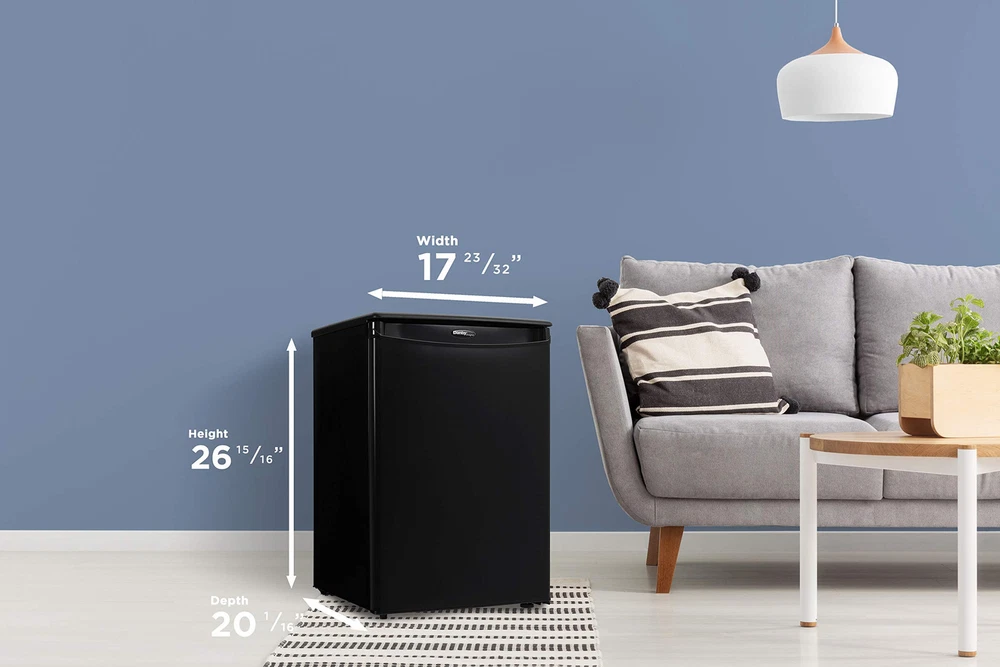 The Designer line of compact refrigerators is dedicated to being well built, easily maintained and convenient. The DAR026A1BDD-6 model comes in at a height of just over two feet and features 2.6 cu. ft. (73 L) of cooling capacity. Quality can look good, with its sleek exterior, this is the ideal unit for floors and countertops, making it the perfect fridge for spaces such as dormitory rooms, wet bars, rec-rooms, dens, workshops and basement lounges. Integrated door shelving with tall bottle storage makes storing all your additional drinks and snacks easy. Accessories can be stored on the scratch-resistant worktop and there’s no need to defrost the unit as it’s done automatically. This appliance also comes with a mechanical thermostat and offers 2.5 strong wire shelves for maximum storage versatility and optimal cool air circulation. Both left and right-handed users will love the convenient reversible door swing and the integrated door handle. This mini fridge is designed to blend with any decor style seamlessly. Compact Mini Fridge: This Designer Mini Fridge is the perfect size to fit countertops, desktops or floor and is an ideal mini fridge for your bedroom, office, or dorm 2.6 Cubic Feet (73 Liters) Capacity: The All refrigerator unit is small but mighty with 2.6 cu. ft. of fridge space Integrated Door Shelving: Tall bottle storage is ideal for large pop, water, juice, or other drink bottles CanStor Beverage Dispensing System: Efficient and tidy can storage integrated into the mini refrigerator door Clean Bright and Modern: White interior, integrated door handle and functional textured scratch resistant worktop Fits anywhere: Smooth back design with no bulky exposed components means this small mini fridge can fit just about anywhere in your room Versatile: 2 full width and 1 - 1/2 width adjustable wire shelves for undisrupted air circulation and reversible door hinge Easy to Operate: Automatic defrost and mechanical thermostat means no extra maintenance on your part Environmentally Friendly: Energy Star compliant and uses environmental-friendly R600a refrigerant
