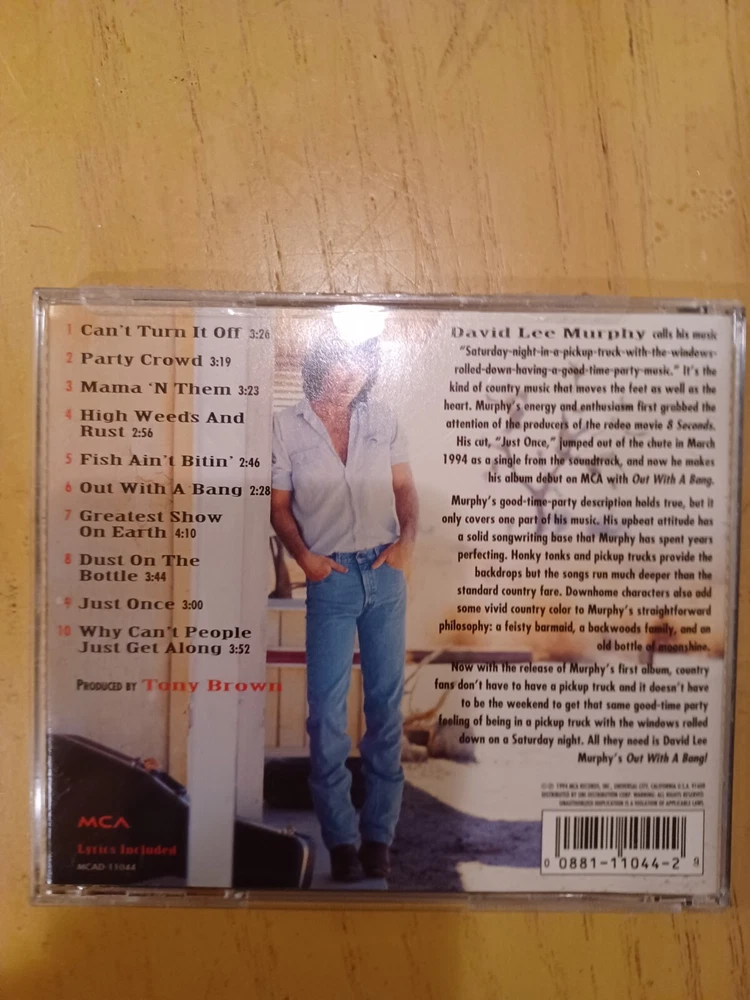 Modified Item: No Artist: David Lee Murphy Case Condition: Very Good Plus (VG+) Genre: Country Inlay Condition: Very Good Plus (VG+) Type: Album Release Year: 1994 Format: CD Release Title: out with a bang CD Grading: Very Good Plus (VG+)