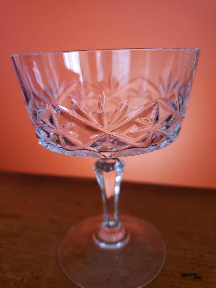 Cristal D'Arques Durand Chantilly Taille Beaugency Set of 5 Champagne Sherbets Condition is pre-owned in beautiful condition like new Thanks for looking Lot 67