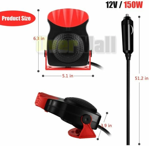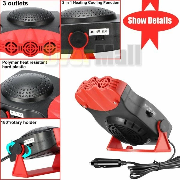 DC 12V 150W Windshield Car Heater Instant Fast Heating Fan Defroster Demister DC 12V 150W Windshield Car Heater Instant Fast Heating Fan Defroster Demister BEST CUSTOMER SERVICE ON OUR sale2015express EBAY STORE↓ ↓ ↓ 〓SHIP From US Local Stock 〓FAST & Free, 1-6 Days Arrival 〓FREE Return, Seller Pay!! 〓LIFETIME Money Back Guarantee 〓LIFETIME Free Replacement Guarantee 〓LIFETIME Warranty 〓QUICKLY Reply within 24 Working Hours 〓 MOST orders ship within 1 business day with Tracking Number 〓 ANY PROBLEM please email us before feedback, thanks! Add our listing to Watchlist Or Add to Cart , you will get more discount!!! Advantage ➤【HEATING&COOLING】 - 2 in 1 mode with hot and cold switch which allowing you to feel the warm in winter and the breeze in summer, sunny day. You just need to change the switch, then the hot air or cool wind will come out immediately as your needs. ➤【INTELLIGENT DESIGN】 - This portable car heaters comes with a rotary holder which can be used for adjustment and easy directing just like a car vent, so you can adjust it to your preferred angle. The base can be installed with our double-sided adhesive, you can fix the heater in your favorite position, which is convenient and comfortable to use. ➤【EASY&EFFICIENT】 - This automotive car heater updated of premium quality material and pure copper cable, which is thicker and longer, make sure a safety usage. It boasts 3 main air outlets for the car heater can ensure fast heating and convenient warming effect. It can quickly be heated within one minute, efficient heat dissipation design,warm your winter. ➤【SAFE&RELIABLE】 - Using cigarette lighter plug design, built-in fuse, automatic power-off protection, anti-voltage, safer use.User-friendly design which is energy-saving with low consumption. It does not use gas, only the energy from the alternator making it the most efficient way to stay warm. ➤【WIDE APPLICATION】 - This car heater is using polymer heat resistant hard plastic material. Ideal for in-car and camping. Keeps you warm in the winter and cool in the summer,it can give you a comfortable and safe driving. Suitable for all 12V vehicles in the car, camping and travel,de-fogging/defrosting in the winter and Keeping cool in summer. Very suitable as a gift for your family or friends. Features: Your car can be quickly warm with 3 outlets to provide a large area of the air,which can can enjoy the cool in the hot summer, and Enjoy warm the cold winter. A scientific high-temperature heat outlet for the heater can ensure fast heating and convenient warming effect. A 180 degree rotary holder is designed for free adjustment,which is very convenient and practical. High efficient heater with a thickened and lengthened pure copper cable will not damage the battery or hot the wiring. Cigarette lighter plug is convenient for you to power the heater. Easy to install, just plug it into your cigarette lighter socket. Suitable for both summer and winter. Ideal for in-car, camping & caravanning demisting or defrosting.Fit For all 12V Vehicle Cars Specifications: Material: ABS Plastic Color: Black Voltage: 12V Wattage: 150W Cable Length: 1.2m / 47.24" Product Size: 17 * 11 * 4 cm Installation: 1. Simply stick or fix to your vehicles' dashboard or anywhere in your car or van you want. 2. Just plug in to your cigarette lighter socket and turn on. Payment Delivery details About us Contact us Payment PayPal accepted. Payment should be expected with 4(Four) days after bid. We appreciate prompt payment and unpaid items will be filed for Final Value Fee if payment not received in 4 days. Delivery details Shipping available time: Mon. - Fri. exclude holidays Fast Package Handle-All orders will be shipped out the next business day. Tracking notification will be updated to the eBay transaction record ASAP. We Ship to Payment address ONLY. So please confirm shipping Address prior to your payment. Wrong address provided will be decided to buyer's fault. Resend rates will be charged. International Orders: The buyer is responsible for any applicable import duties and local taxes Our price does not include taxes, VAT, or other hidden charges. About us Welcome to OverMall, We pride ourselves on providing the outstanding service and high qualtiy products, make our customer feel confident buying online. For the most US address, we offer free standard shipping. By shopping with us, you can guarantee the latest technology for the best possible price. Contact us Pls contact us by ebay message if you have any problom ALL replies will be sent to your email, if you don't get response within 1-2 business days, pls check your My Messages' in case your email provider has an overly-aggressive spam filterblocking eBay's emails. Please email us AGAIN.