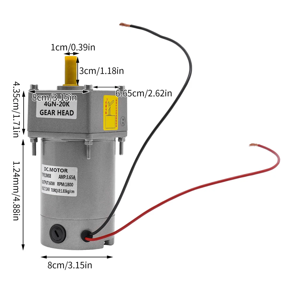 DC 24V Gear Motor Adjustable Motor 1800rpm, Large Torque Gear Motor Waterproof