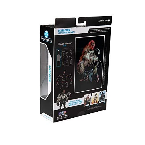 Twenty years in the future, Gotham City is a dystopian landscape ruled by a mysterious new villain calling himself Omega. Among his lackeys is Scarecrow, a.k.a. Dr. Jonathan Crane. The former Gotham University professor turned Super-Villain has now become an even more twisted, nightmarish version of himself. Riding on the back of Bane and brandishing long, fear toxin-filled syringes as fingers, Scarecrow dispenses terror as he hunts down the Dark Knight. Scarecrow figure is based on the comic book Batman: Last Knight on Earth #2 (Comic 2019) Designed with Ultra Articulation with up to 22 moving parts for full range of posing and play Comes with alternate hands and flight stand Includes 1 of 4 pieces that when combined with the remaining pieces will assemble Bane from Batman: Last Knight on Earth Earth #2 Showcased in DC themed window box packaging