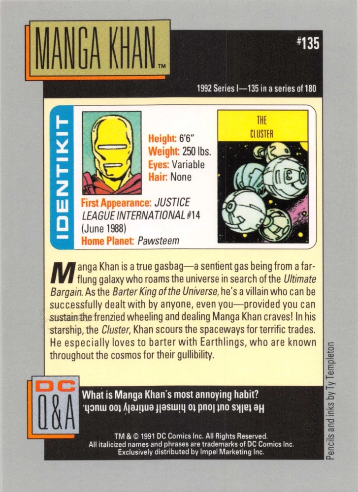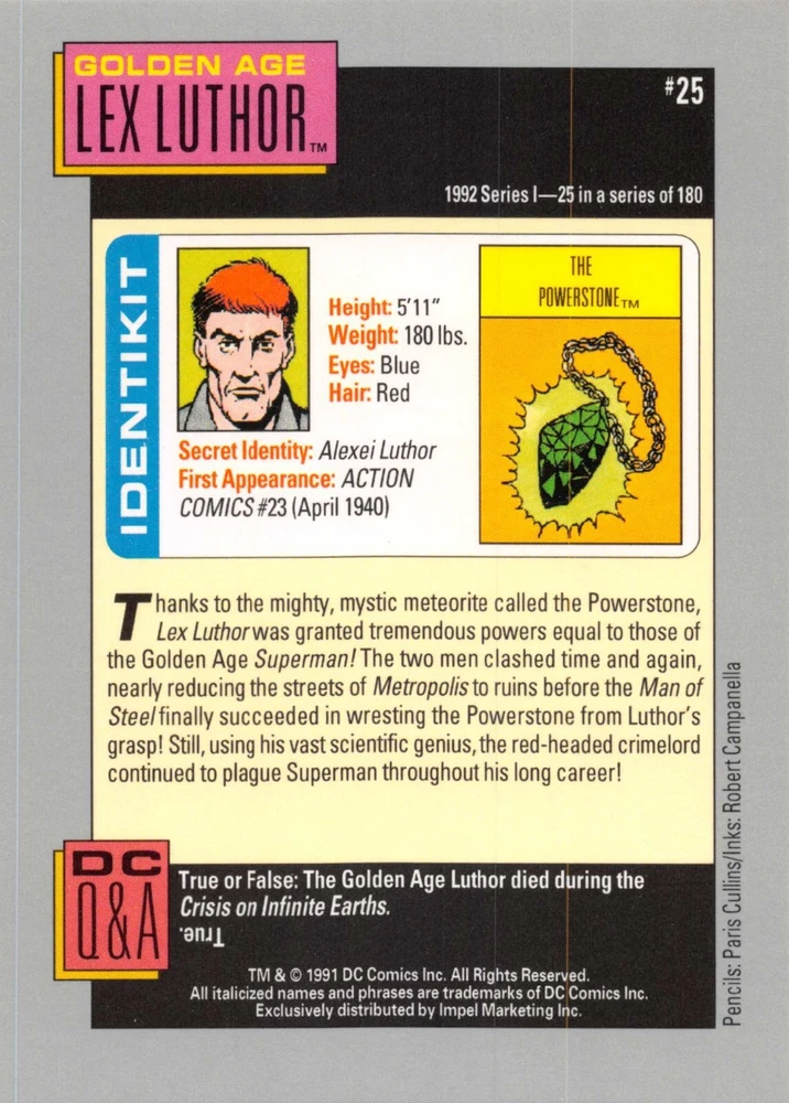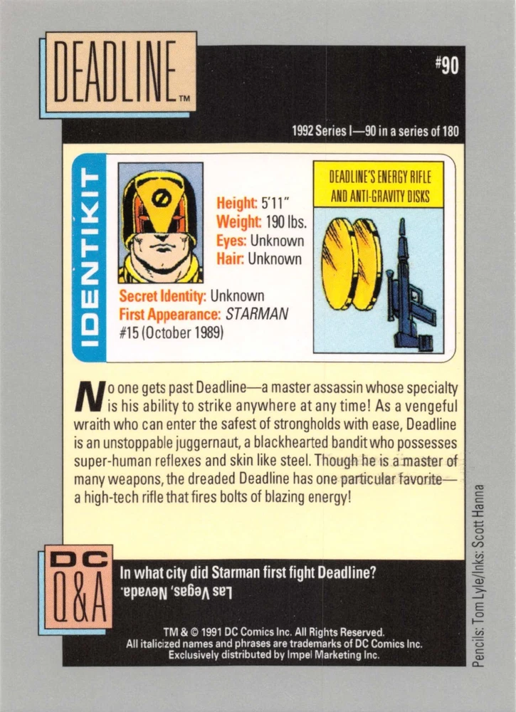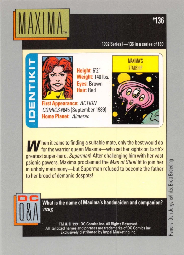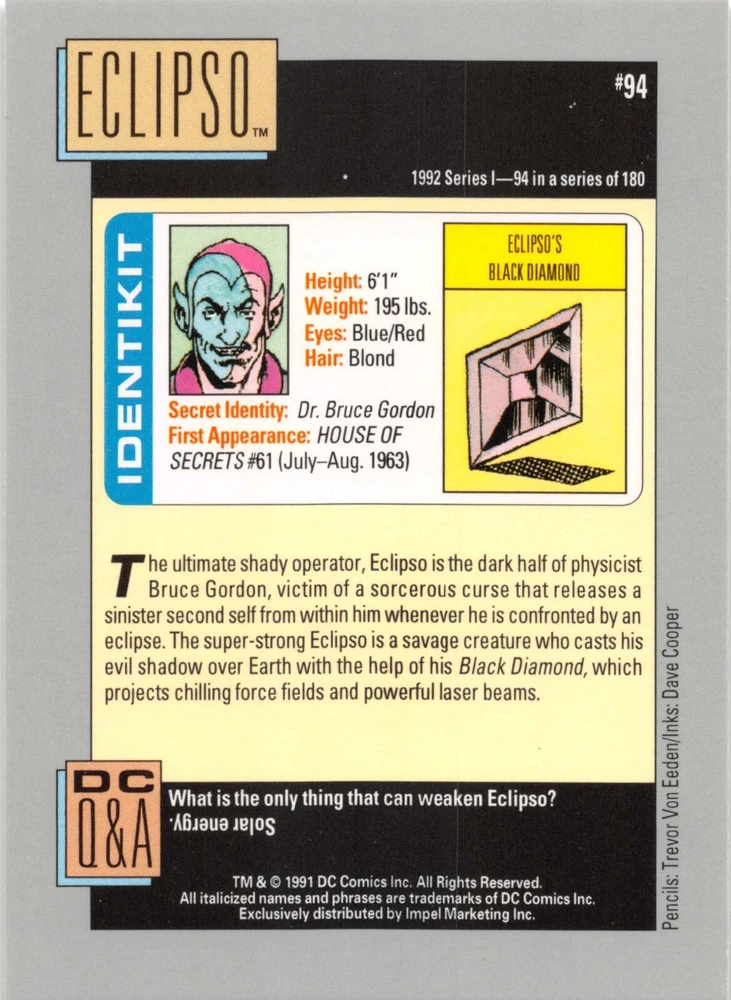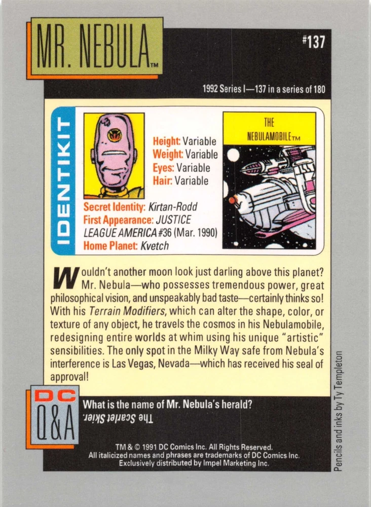 This listing is for your choice of any available 1991 Cardz "Cosmic Cards" base card from the drop-down menu above. Photos show front and backside of each card, be sure to scroll sideways to view front and backside photos! Check out my other listings for more single parallels from this same set. Any questions? Please ask before buying. International "USPS First Class Mail" will not include a tracking number for this item, if you would like a tracking number please choose the "eBay International Standard Shipping" option when you check out. As with all of my "pick-a-card" listings, I will be shipping with "eBay Standard Envelope". The rules of this envelope state that it cannot be too thick, so please expect your order to be packaged as follows: 1 to 6 cards will be slid into a single sleeve, the sleeve will then be slid inside of a semi-rigid Card-Saver. 6 to 12 cards will be slid into a double sleeve, 13 to 18 cards into a triple sleeve, 19 to 24 cards into a quadruple sleeve(up to six cards per sleeve). The double, triple and quadruple sleeve shipping will not have the Card-Saver. If you buy more than 1 card and want it packaged with more than 1 Card-Saver(or 1 sleeve per card), I kindly ask that you contact me before purchasing to be sure that this is possible to have it done with the stated shipping charge, or if additional shipping would be required. If you do not contact me, then you can expect to receive your order packaged as I have explained here. Please do not expect rigid top-loaders to be included, I don't normally keep a lot of them in stock, but if you message me prior to ordering I will be able to see if I have any that can be included with your order - additional shipping may be required. In order to get free combined shipping from this and any of my other "pick-a-card" listings, you must add all of your cards to the cart and check out when you are done shopping. If you do not use the cart you will be overpaying on shipping and I cannot refund you on over-payed shipping. So please use the cart and get your FREE COMBINED SHIPPING!