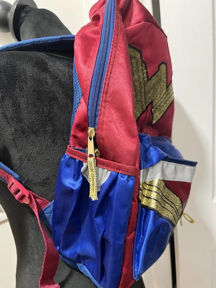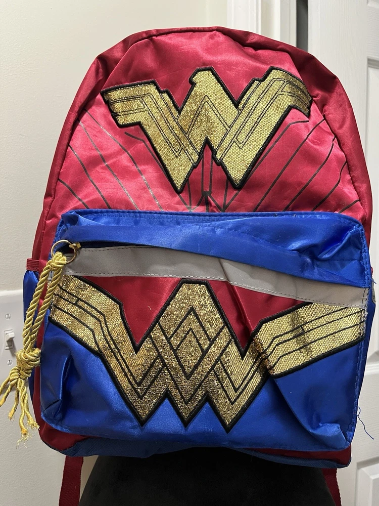 Material: Polyester Features: Adjustable Straps Style: Backpack Department: Men Color: Red, Gold, and Blue Brand: DC Comics Character: Wonder Woman MPN: Does Not Apply