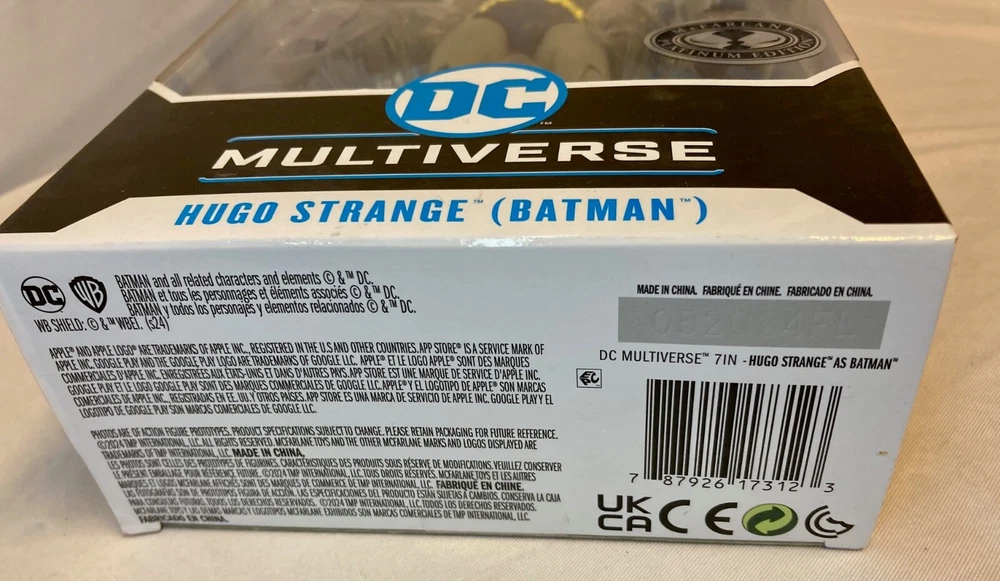 Brand: McFarlane Toys Time Period Manufactured: 2020-Now Item Height: 7 in Franchise: DC Multiverse Country/Region of Manufacture: China Character: Batman, Hugo Strange Features: Chase, Platinum Edition Material: ABS Plastic, Plastic Theme: Comics UPC: 787926173123 gtin13: 787926173123 Type: Action Figure Year Manufactured: 2024