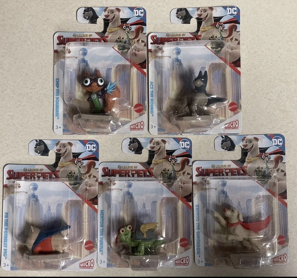 This DC League Of Super Pets Micro Collection includes a set of 5 figures featuring characters like PB, Ace, Merton, Krypto, and Chip. Produced by Warner Bros. Animation in 2022, Each figure represents different animal species such as a turtle, squirrel, dog, and pig, adding a colorful and fun touch to any DC Comics fan's collection. Smoke and Pet free home. The items are packaged and I do not combine shipping.