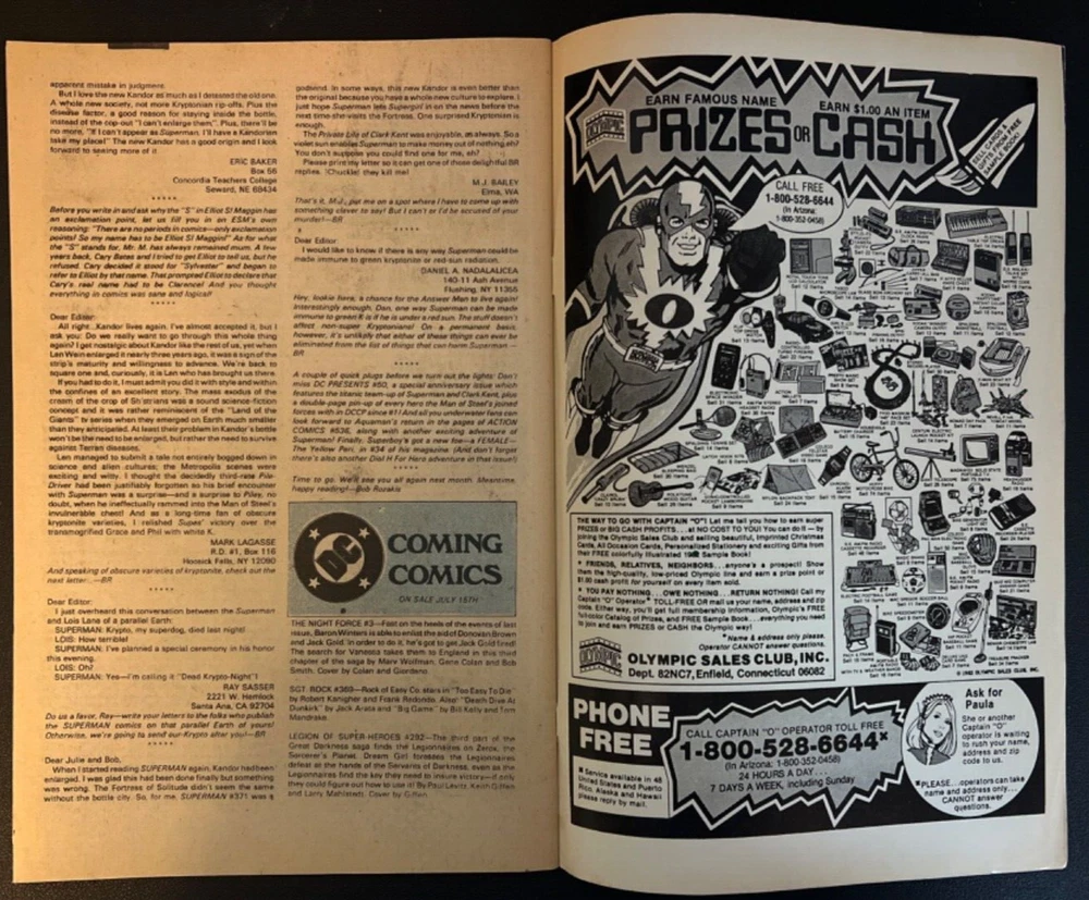 This is a classic issue of DC Superman #376 , published in October 1982, featuring the thrilling story titled "The Ozone-Master Comes Calling." A must-have for collectors and fans of the Man of Steel! Details: Publisher: DC Comics Release Date: October 1982 Issue Number: #376 Featuring Superman in an exciting vintage storyline. Shipping & Handling: Comic will be securely packaged to prevent damage during transit. Combined shipping available for multiple purchases—check out my other listings for more comics and collectibles! Don’t miss your chance to own this vintage Superman issue. Add it to your collection today!