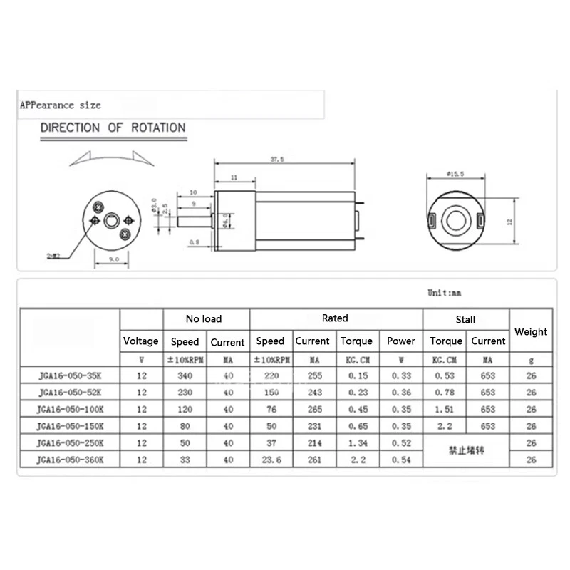 Product Information: If you have any questions, then kindly please contact us via the ‘Ask a question’ Tab which is located on the bottom of the listing page. Customers Note: Our customer satisfaction is at the top of our priority. We aim to provide a pleasant shopping experience for all of our customers. If there are any questions or problems, then kindly please contact us via an ‘eBay’ message and we take every effort to answer all of the queries put forward for us within 24 hours. If for some reason you are not fully satisfied with your purchase, then please do not leave negative feedback before contacting us as we will resolve the issue for you. If you are interested in more products then kindly please have a look at our eBay shop. Thank You for shopping with us and we hope to se Product Information: Model: JGA16-050 Voltage range: 3-12V Output shaft, motor speed and voltage can be customized Main applications: instruments and meters, digital products, medical equipment, security monitoring, intelligent door locks Reduction ratio: 35, 52, 100, 150, 250, 360 If you have any questions, then kindly please contact us via the ‘Ask a question’ Tab which is located on the bottom of the listing page. Customers Note: Our customer satisfaction is at the top of our priority. We aim to provide a pleasant shopping experience for all of our customers. If there are any questions or problems, then kindly please contact us via an ‘eBay’ message and we take every effort to answer all of the queries put forward for us within 24 hours. If for some reason you are not fully satisfied with your purchase, then please do not leave negative feedback before contacting us as we will resolve the issue for you. If you are interested in more products then kindly please have a look at our eBay shop. Thank You for shopping with us and we hope to see you soon! P a ckage Including: According to your choice. Other accessories are not included. On Jul 29, 2024 at 13:29:00 PDT, seller added the following information: