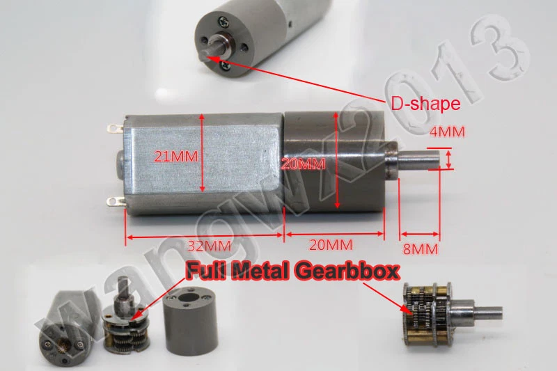 ☆ Welcome ☆ to ☆ our ☆ store ☆ Product Description DC1.5V-4.5V 45-300RPM Speed Reduction Gear Motor with Full Metal Gearbox For Robot Specification: D-shape shaft Suitable Voltage: 1.5V-4.5V No Load Speed: 45RPM-300RPM No Load Current: 0.25A-0.45A Weight: 60g Motor Diameter: about 21mm Motor Body Length: about 32mm Output Shaft Diameter: about 4mm(D-Type) Output Shaft Length: about 8mm Gearbox Diameter: 20mm Gearbox Length: 20mm Package Include: Motor x 1 Shipping Time & Shipping Method All items will be shipped to worldwide. All items will be shipped to your ebay address , so please make sure to provide us with the correct, precise, detailed shipping address at ebay. Customs duty is obligation and liability of a citizen in your country, so the buyer should be responsible for any tax and custom duty incurred. Most of the items will be shipped by China Post / Hongkong Post / Singapore Post . The shipping time as the follow table is just your reference. (Note: Brazil/Russia/Ukraine/Mexico/Argentina/Colombia/Chile will take much longer time than other countries, so the refund time will be up to 55 days.) Shipping Method Destination Shipping Time Postage China post / Hongkong post / Singapore post Australia 15-35 days Free shipping (weight < 2kg) United Kingdom 15-35 days Canada 20-35 working days Vietnam, Maldives, New Zealand, Japan, Korea South, Austria, Germany, Netherland, France, Finland, Thailand, Denmark, Greece,Switzerland, Portugal, Greece, Belgium, Ireland, Singapore, Norway 20-35 working days South Africa, Bulgaria, Belarus, Cyprus, Croatia, Latvia, Monaco, Moldova, Macedonia, Montenegro, Poland, Romania, Serbia, Slovakia, Slovenia, Ukraine, Brunei Indonesia, Cambodia, Malaysia, Philippines, Vietnam, Maldives 20-35 working days Italy, Brazil, Russia, Israel, and other small countries 35-55 working days EUB USA 7-15 days ----- EMS Most of the countries 5-15 days Contact us DHL/Fedex Australia, France, UK, Germany, USA, and other countries 3-7 days Contact us Payment We only accept payment via PayPal . Payment must be completed within 7 days. Please leave messages for your special requests (e.g Color or Size.) in the paypal notes section when you place the order. Return Policy & Feedback All the items will be tested before shipping. Buy them with the confidence! If the item is defected when you receive it or you are not satisfied with it, you can email us for a replacement or refund, but you have to return the item to us within 7 days.Please contract us and double check the return address before you return it. No accepting to return the electronic components. Full refund when receiving the original item. Notice: Return shipping fee is paid by the buyer. We maintain the excellent service standards and strive for 100% customer satisfaction! Positive feedback is very important to us,so if you have any problem, please do feel free to contact us before you give us Neutral or Negative feedback , so that we can satisfactorily address your concerns. Contact Us We strive to provide you with the best service, and we will reply your question within 24 hours. Our greatest goal is to meet the maximum demands of the customers. Business time: 9:30~21:30 (GMT+8) Contact us Your satisfactions are our greatest pursuits!!! On Oct-22-17 at 19:47:14 PDT, seller added the following information: