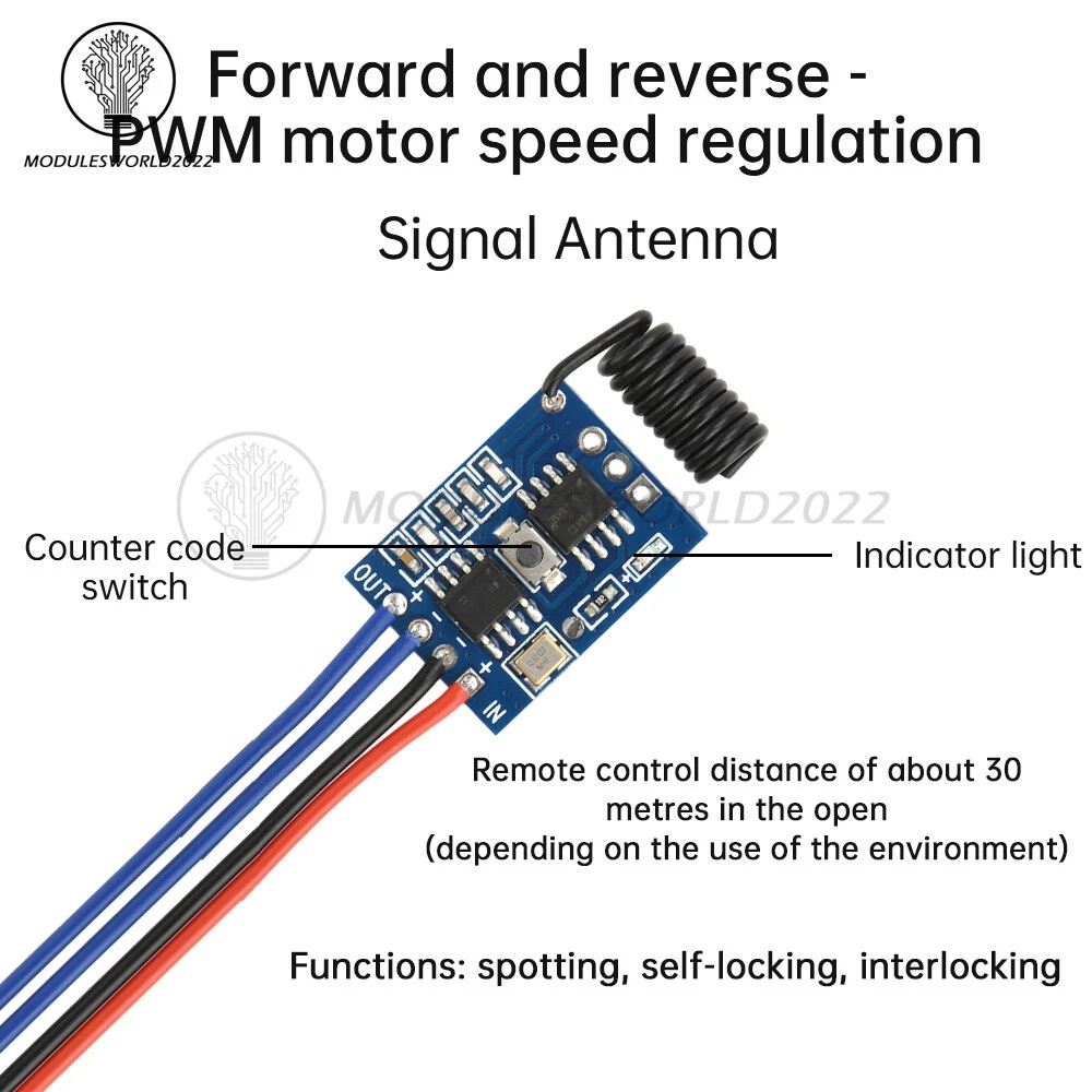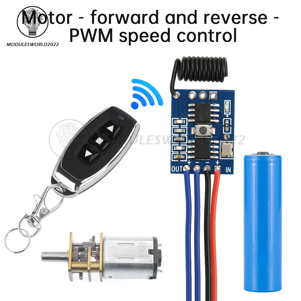 Store Categories Store Categories Other Product View Details Features: 1. DC3V-12V wide voltage input, suitable for a variety of DC motors, a wide range of applications 2. wireless remote control function, convenient operation, suitable for remote control of the motor forward and reverse 3. PWM speed control, precise control of motor speed, realize smooth speed regulation. 4. miniature design, compact size, easy to integrate into a variety of equipment 5. High reliability, built-in protection circuit to ensure stable operation for a long time. 6. Suitable for DIY projects, provide clear wiring diagrams and instructions for use, beginner-friendly Parameter: 1. Use voltage: 3-12V 2. Load current: 0.5A, within 5W 3. With pointing, self-locking, interlocking, forward and reverse, speed control function 4. It can only work in one mode each time, and can switch the mode through the code switch. 5. 3-key remote control can be used for tapping, self-locking, forward and reverse, speed control (1-key remote control can only be used for tapping, self-locking, forward and reverse / 2-key remote control can only be used for tapping, self-locking, forward and reverse) Attention: 1. This link does not come with motor and battery 2. The remote control distance is about 30 meters in the open (depending on the use of the environment) 3. Some motors 3V can not start, please increase the supply voltage 4. Be sure to check the power input positive and negative poles correctly and then energized 5. Shipping default self-locking mode, you can change the mode after receipt of goods Package include: Speed control module *1 3-key remote control *1 (optional) Shipping Policy Payment Method Returns Policy Shipping Policy Payment Method Returns Policy Home Payment Shipping About us Contact us Copyright©2018 datacaciques Home Payment Shipping About us Contact us Store Categories Store Categories Other Product View Details Features: 1. DC3V-12V wide voltage input, suitable for a variety of DC motors, a wide range of applications 2. wireless remote control function, convenient operation, suitable for remote control of the motor forward and reverse 3. PWM speed control, precise control of motor speed, realize smooth speed regulation. 4. miniature design, compact size, easy to integrate into a variety of equipment 5. High reliability, built-in protection circuit to ensure stable operation for a long time. 6. Suitable for DIY projects, provide clear wiring diagrams and instructions for use, beginner-friendly Parameter: 1. Use voltage: 3-12V 2. Load current: 0.5A, within 5W 3. With pointing, self-locking, interlocking, forward and reverse, speed control function 4. It can only work in one mode each time, and can switch the mode through the code switch. 5. 3-key remote control can be used for tapping, self-locking, forward and reverse, speed control (1-key remote control can only be used for tapping, self-locking, forward and reverse / 2-key remote control can only be used for tapping, self-locking, forward and reverse) Attention: 1. This link does not come with motor and battery 2. The remote control distance is about 30 meters in the open (depending on the use of the environment) 3. Some motors 3V can not start, please increase the supply voltage 4. Be sure to check the power input positive and negative poles correctly and then energized 5. Shipping default self-locking mode, you can change the mode after receipt of goods Package include: Speed control module *1 3-key remote control *1 (optional) Shipping Policy Payment Method Returns Policy Shipping Policy We will arrange shipping for you within 24 Hours after payment cleared except the holidays. -We ship items to Worldwide. Thank you! -we will ship out the order in 1-2 business days after payment cleared .Since it is international shipping ,delivery time is about 15--28 business days to arrive to most countries. Payment Method We accept PayPal payment ONLY, and must be received within 5 days from the date of purchase. 2. It is easy and safe for you to pay by credit cards, debit cards, bank transfers and PayPal account balances. 3.Buyers are responsible for import duties,custom fees and taxes, if any, please check your country. Returns Policy 1.We believe our items are so outstanding. We are convinced you will be happy with your Purchase. 2. If you do not satisfy with our items. Please simply return to us within 30 Days in original condition. Just pay for the returned postage. Then we can issue full refund or resend the item to you after the returned item arrived at our warehouse. 3. Please include your eBay ID and item number with any email requests.