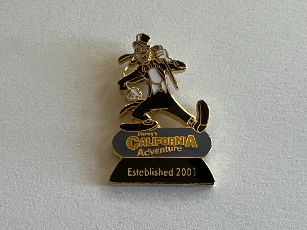 Thanks to Pinpics for the information below: Pin Stats Origin:DL - Disneyland California Limited Edition:No SKU Number:400002740018 Original Price:$6.00 Released: Retired/Sold out:Yes Goofy in full formal attire: Black top hat, tuxedo with tails, and a cane. He is strutting towards us, standing atop a grey oval sign that reads, "Disney's California Adventure," and beneath that a black base that reads, "Established 2001." Pins included in this series are: #3989, #4656, #4657, #4658, #13292, #14016. I do combine shipping add items to your shopping cart and it will automatically change shipping for most pins and will add only 50 cents for each additional pin in the same transaction. Please make any corrections to your address prior to payment. Address corrections will not be made after purchase. We will not sell pins that we suspect to be scrappers or fakes, however it is not possible to 100% guarantee authenticity on any pin obtained secondhand, as many of our pins are. We use our best judgement to determine authenticity of the pin and post pictures of the exact pin that you will be getting, so that you may also use your judgement. We have many happy customers. Please feel free to check out our positive feedback, and even our repeat customers. Payment & Shipping We accept all major credit cards through PayPal. No trades or offers will be accepted . Payments must be made immediately. Shipments are made only to the address on the order. Please make any corrections to your address prior to payment. Address corrections will not be made. We place the pin(s) in a heavy duty zip bag, and ship the pin(s) in a bubble envelope . We combine shipping costs. Shipping for additional pins is only $0.50 each. On Buy it now listings you must put the items into your cart and pay at once for the multiple item discount. Payment for your item(s) on Auctions is expected within 3 days of your purchase. We offer USPS First Class Mail within the Domestic US. Shipments occur Monday - Saturday within 48 hours of payment received from a confirmed Paypal address. Purchases made on a weekend or holiday will ship out on the next business day. Purchases will receive a tracking number to monitor your shipment. Please allow 24 to 48 hours for tracking information to update on the shipping company's website. This is normal; please do not be concerned if this is the case with your package. Returns All of our auctions are for the pin(s) shown in the pictures, on an "as is" basis. Due to a rising concern over people buying authentic pins and returning fakes, returns are only accepted if we make a mistake and send an incorrect item, not solely based on the correctness of our assessment of a pin's authenticity.