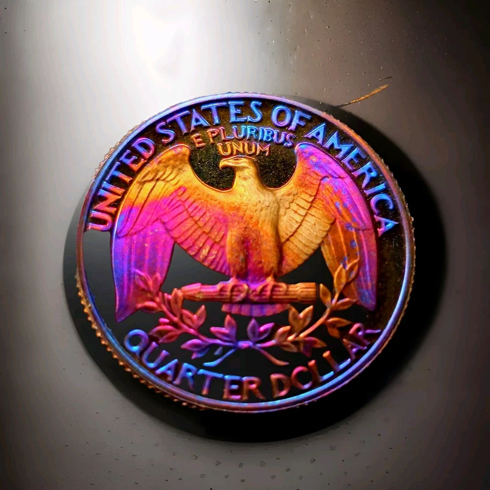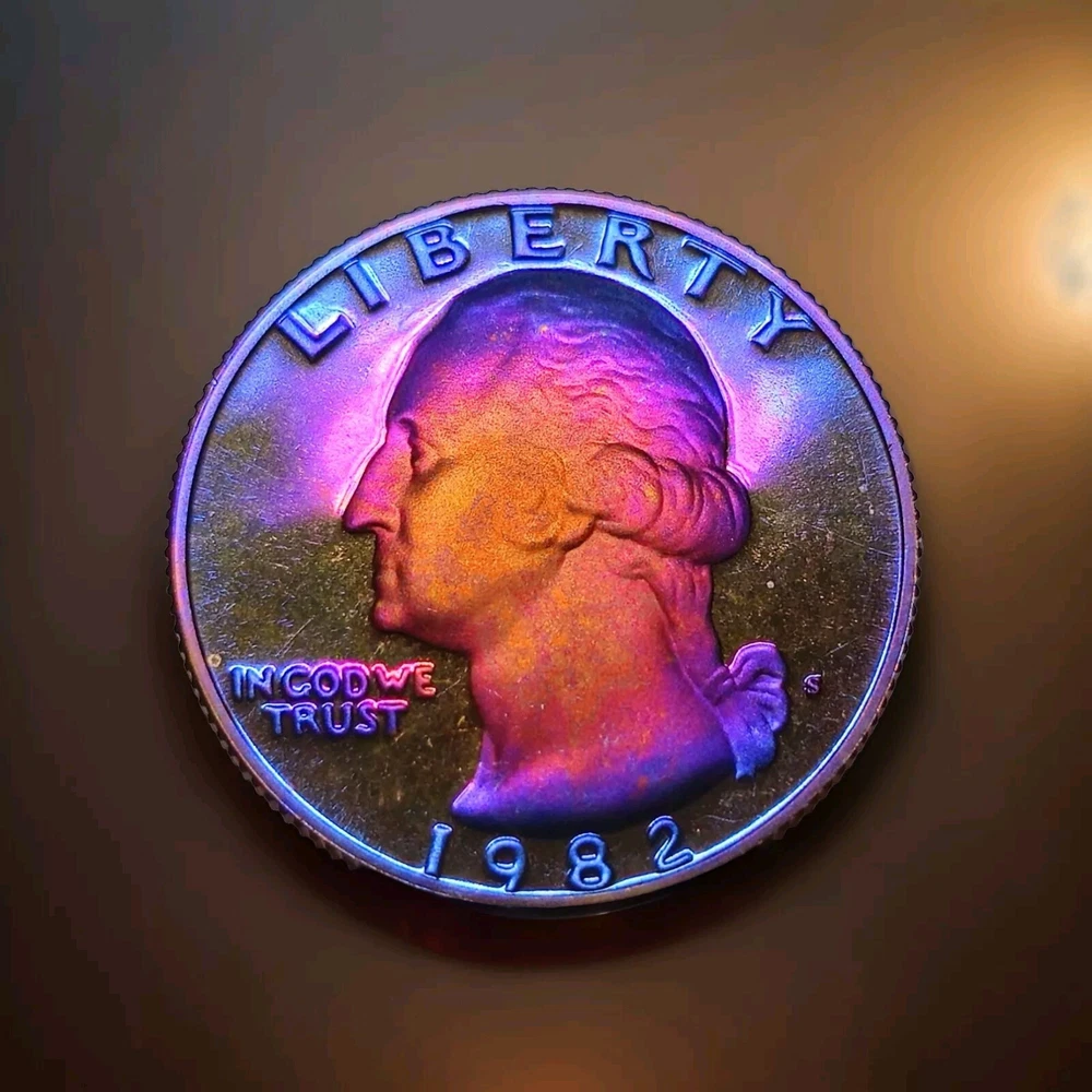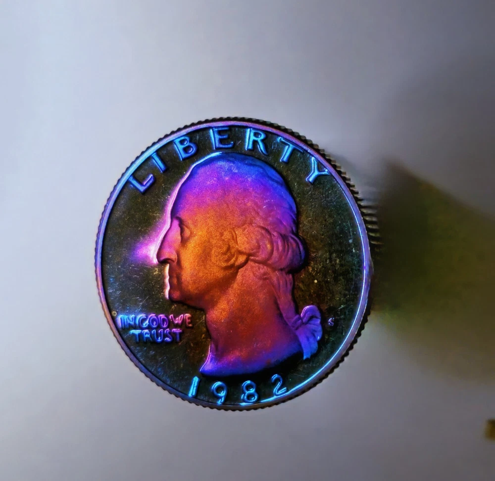 DCAM 1982 S Proof Washington Quarter Artistically Rainbow Toned BRIGHT I will combine shipping and you will only ever pay what it actually costs to ship.