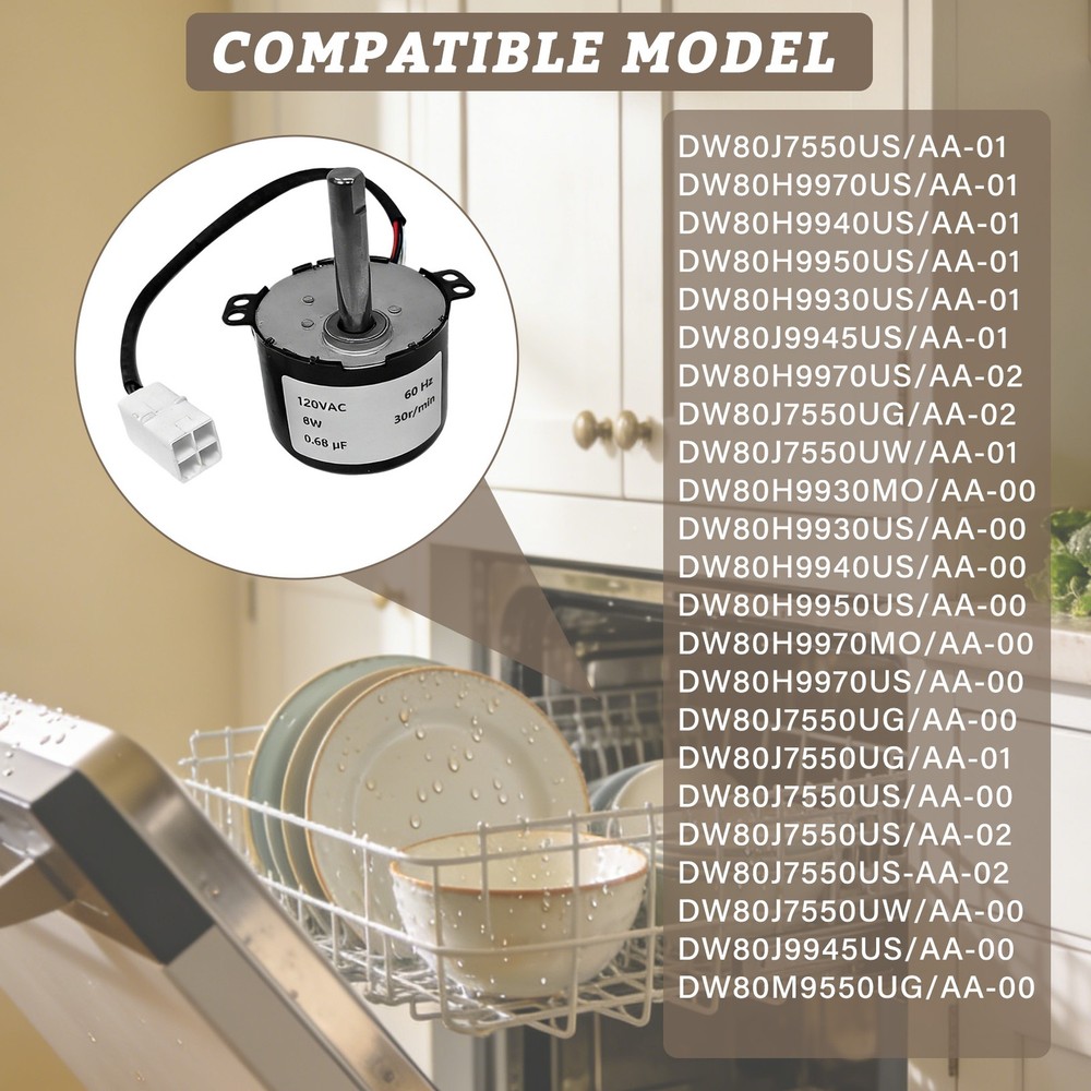 Store Categories Store Categories DD31-00013B Dishwasher Geared Motor for Samsung Dishwasher Product Description 【Cross Replacement Part Number】- Replacement for numbers 4000924, AP5917177,EAP9606349, PS9606349,Designed to fit specific manufactured dishwasher models 【Solve A Problem】- 1: Dishwasher has dirty dishes after running. 2: Spray arm does not rotate. 3: Shower arm cannot start and works slowly and smoothly. 4: Solve the code error problem of dishwasher 【Product functional parameters】- DD31-00013B turns the belt to move the WaterWall spray arm forward and backward inside the tub, The motor shaft is made of stainless steel to prevent rust and corrosion.Motor parameters:120V | 60Hz | 30 RPM | 8.0W|4 Pin Molex Plug Attached|D Shaped Shaft 【Product compatible models】- DW80J7550UW/AA-01,DW80J7550UW/AA-00,DW80H9930MO/AA-00,DW80H9950US/AA-00,DW80H9950US/AA-01,DW80H9930US/AA-01,DW80H9930US/AA-00,DW80M9550UG/AA-00,DW80H9970US/AA-02,DW80M9960UG/AA-00,DW80H9970MO/AA-00,DW80H9970US/AA-01,DW80J7550US/AA-00,DW80H9970US/AA-00,DW80J7550US/AA-01,DW80J9945US/AA-00,DW80J9945US/AA-01,DW80M9550US/AA-00,DW80H9940US/AA-00,DW80J7550UG/AA-02,DW80H9940US/AA-01,DW80J7550UG/AA-01,DW80J7550UG/AA-00 DW80R9950US/DW80R9950US 【Package Contents】DD31-00013B for Samsung Dishwasher Geared Motor & DD62-00053A Motor Shaft Seal Contact Us Shipping Policy Returns Policy Contact Us Please feel free to contact us if you have an issue with the part you receive. Please do not open a case directly through eBay as it will hurt the seller's good standing. We ask you to please give us the opportunity to resolve any issue you might have directly with you first. We usually reply within 24 hours, holiday and weekends might take slightly longer. Thanks for your patience, understanding and cooperatio We strike to make the buying and selling experience pleasant for both. Thank you for your time and cooperation. Shipping Policy The item will be shipped within 48 hours on payment received except the holidays.(except weekends & official holidays). You can log on to eBay to check your logistics tracking number.Please confirm address before purchase, and cannot change address once purchased. If you need to receive the item quickly, please contact us, you can pay the postage to choose other logistics. Returns Policy Please contact us first when return, exchange and refund is required. Any direct return of purchased items will not be processed. Item must be returned in new condition, as received with all accompanied accessories and literature, including the factory carton. Shipping, handling is not refundable unless item is returned because of defect. Copyright © 2023 Dianxiaomi