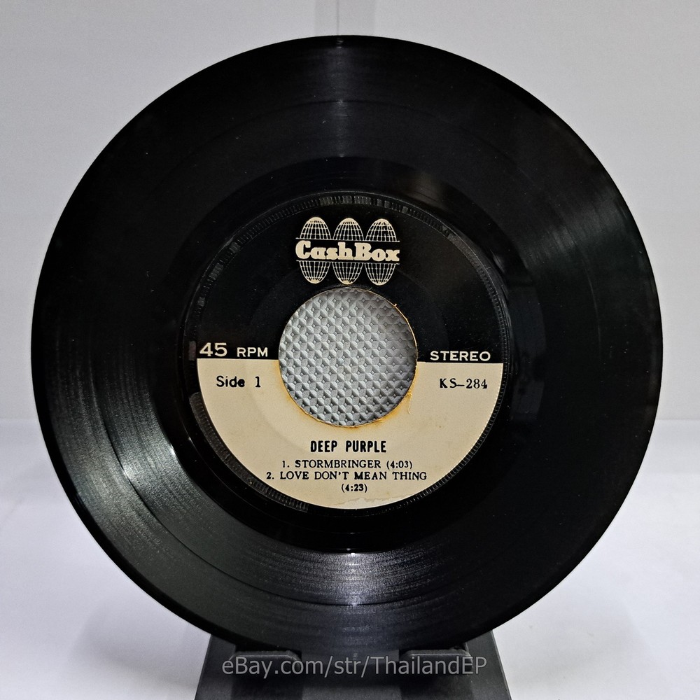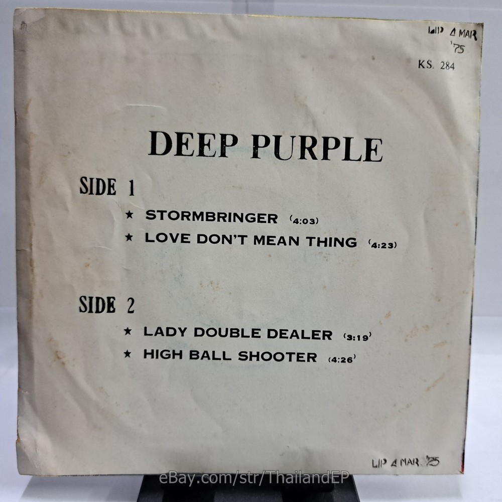 Welcome to XexRecords Store The World of ""Thailand Vinyl Records"".Very rare and beutiful picture of cover. Check everyday . This item is for a true 7" single collector. It was printed and sold locally as limited EP back in the early 70's. Only few copies were spread outside Thailand. Most professional record collectors know that it is scarce nowadays and is absolutely a collector's item. If you know a UK magazine called RECORD COLLECTOR then you must have read many articles mentioning THAILAND EP and this is it !!! Here is your chance to own one-of-a-kind piece of Asian's 7" single history. Description Records !!! DETAIL SONG and ARTIST !!! Side A: A1 = Deep Purple - Stormbringer / A2 = Deep Purple - Love Don't Mean Thing Side B: B1 = Deep Purple - Lady Double Dealer / B2 = Deep Purple - High Ball Shooter Label&Catalogue number : : KS284 Country of release : THAILAND Condition (Sleeve/Disc) : VG+ / VG+ and pls see picture too. Shipping I am seller in Thailand not USA.So I can not ship 4$ as policy pls understand this real rate from oversea . Price for shipping(Airmail )&Packaging to worldwide only US 14.99 USD .Except Asia and JAPAN only 14.99 USD. You can save cost for combine shipping only 3 USD$ per each. 2xEP=17.99 USD$ , 3xEP=20.99 USD$ . My package very safety by big cardboard don't worry about your's EP/PS/LP. Time delivered 21-45 days . ***All item : have tracking system no need add money*** **For normal shipping (Airmail).Time delivery to ITALY maybe use 1-2 Months, France use 1-2 Months.But Don't worry item will arrived to you sure!!.For fastest and High value you can use Express Mail Service cost for1 EP =39 USD.EP will arrived to you within 5-7 Days. ***All shipment have fully tracking system *** Payment PAYMENT : I accept the follow payment by eBay managed , . My ID eBay provide by eBay .Account will be provide at the end auction.Charges to be covered by winner. If you have question pls email to me anytime i can answer immediatly. I have many EP,PS 7" Thailand Pls Click => View seller's other items Check my feedback , I care and honest all customer.I welcome 0 feedback but contact me first if you will bidding. Good Luck !!!! and Enjoy . 45 RPM / EP/ LP Grading Scale: Mint /NM/ Excellent(VG++) /VG+/ VG /G+ /Good(G) / Fair / Poor / Bad (According Record Collector Magazine (UK)) LOT168-50KS284