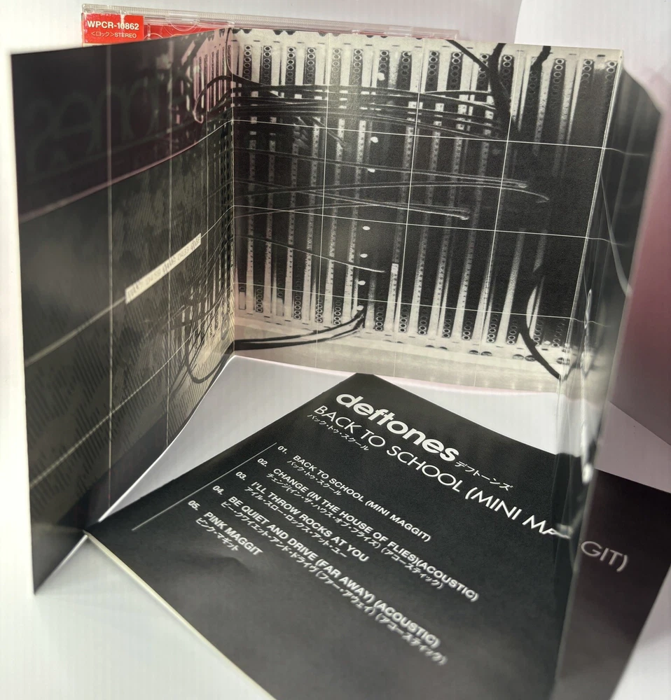 This is the Deftones "Back to School (Mini Maggit)" CD from Japan, featuring 5 tracks and including the obi strip and booklet. The Deftones are a well-known alternative metal band, and this CD is a great addition to any collection. Don't miss out on the chance to own this rare CD from Japan. The CD is in mint condition.The booklets and cover art are in excellent conditionThe case is in good condition, with some scratches Thank you for looking!