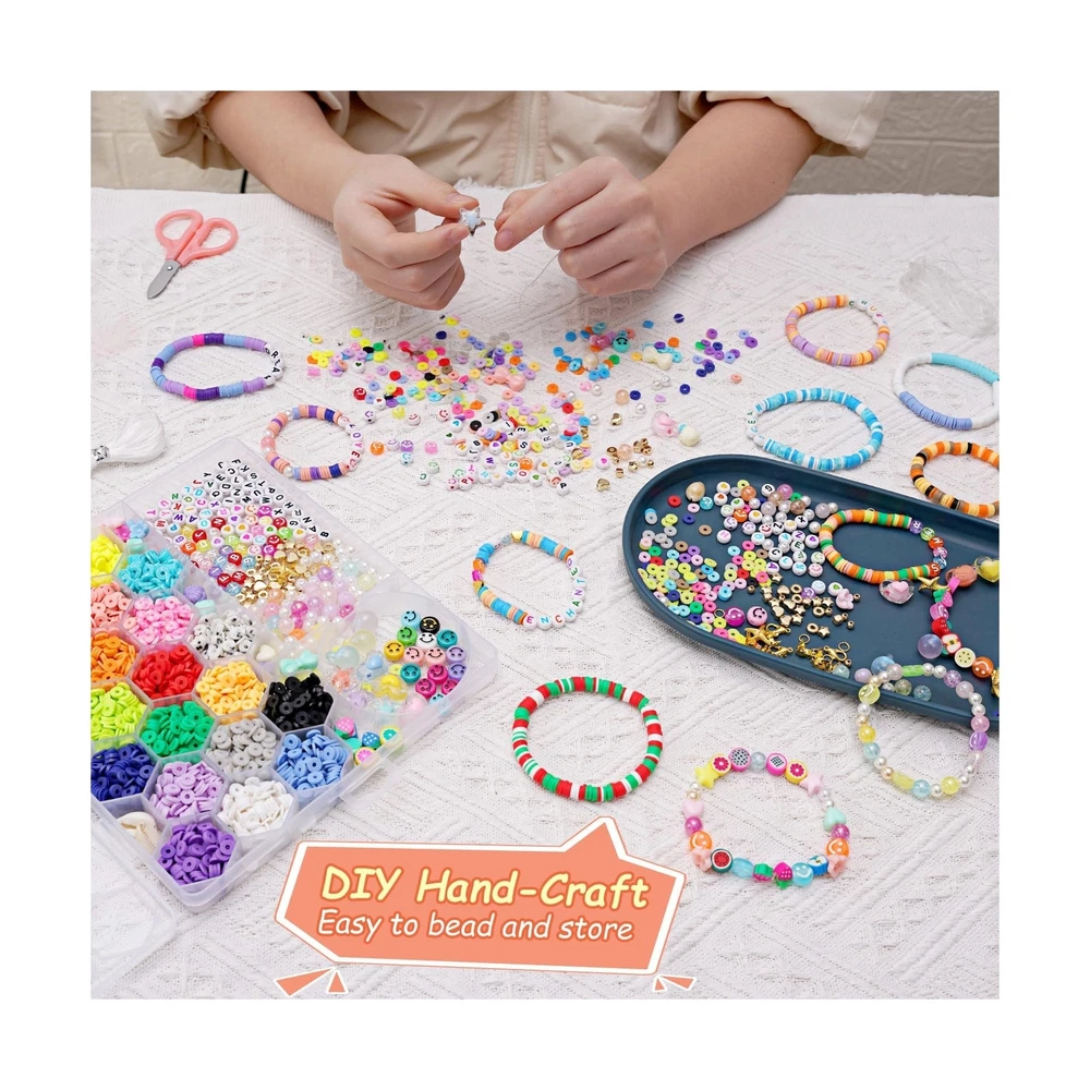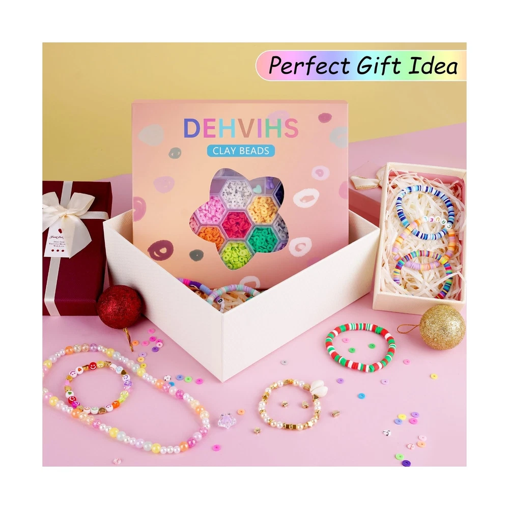 DEHVIHS Clay Beads Kit, 6000PCS Friendship Bracelet Making Kit, 21 Colors with 26 Types of Charms Preppy Polymer Heishi Beads with Letter Beads Jewelry Making Kit Product Details Color: Colorful Brand: Unbranded MPN: Does not apply UPC: Does not apply EAN: Does not apply Brand: DEHVIHS Age Range (Description): Kid Color: Colorful Item dimensions L x W x H: 7.09 x 7.87 x 0.71 inches Material: polymer clay heishi Brand: DEHVIHS Age Range (Description): Kid Color: Colorful Item dimensions L x W x H: 7.09 x 7.87 x 0.71 inches Material: polymer clay heishi Seasons: All Seasons Included Components: 2 rolls of elastic thread, scissors, tweezers, 21 colors of clay beads, 3 varieties of letter beads, 25 varieties of charms and accessories Number of Pieces: 6000 Style: Unique Special Feature: Polymer Clay Heishi, Versatility, Personalization Art Craft Kit Type: Clay Beads, Friendship Bracelet Making Manufacturer: DEHVIHS Product Dimensions: 7.09 x 7.87 x 0.71 inches Item Weight: 6.4 ounces Date First Available: November 18, 2023 [Unlock Your Creativity]: This comprehensive beading kit provides you with a wealth of inspiration. 21 vibrant colors of clay beads (about 260pcs per color, 5460pcs in total), 3 varieties of letter beads (104pcs in total), and an assortment of 25 varieties charms and accessories (436pcs in total). We've also included 2 rolls of elastic thread, a pair of scissors, and tweezers. Let your imagination soar and indulge in endless DIY fun! [Premium Quality Material]: Our clay beads are crafted from polymer clay heishi, offering a lightweight and comfortable feel. Perfect for any occasion, from beach outings to parties and banquets, these beads ensure both style and comfort. [Versatile Creations]: Dive into a world of possibilities! Use this clay bead kit to craft friendship bracelets, necklaces, anklets, or even charming cell phone pendants. Bond with your kids over cheerful family DIY time or create heartfelt DIY gifts for birthdays, Valentine's Day, Mother's Day, Christmas, and Thanksgiving. [Ideal DIY Gift]: Explore various color combinations and letter bead arrangements to unveil unique designs with distinct meanings. Enhance not only your crafting skills but also color cognition, hands-on ability, concentration, and patience. This kit fosters a harmonious and enjoyable family atmosphere, strengthening parent-child relationships through shared DIY experiences. [Important Reminders]: For the safety of children, it's advisable to supervise their use of this clay beads kit to prevent accidental ingestion. If you have any questions or need assistance with our product, feel free to reach out. Your satisfaction is our priority!