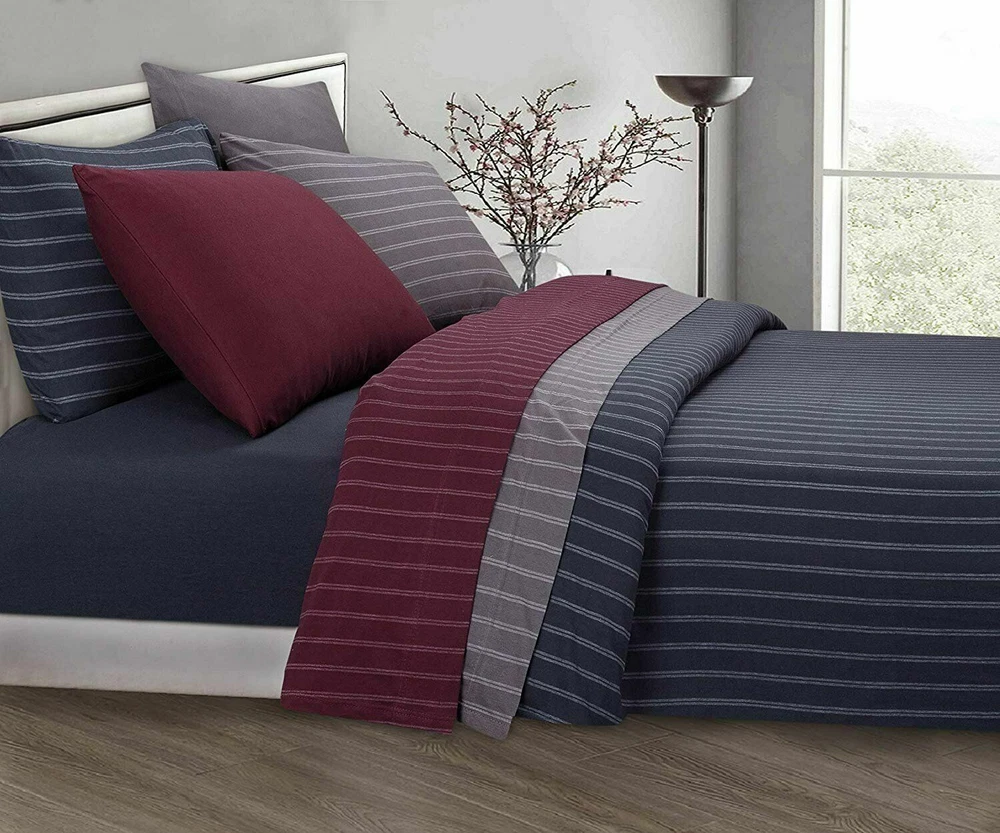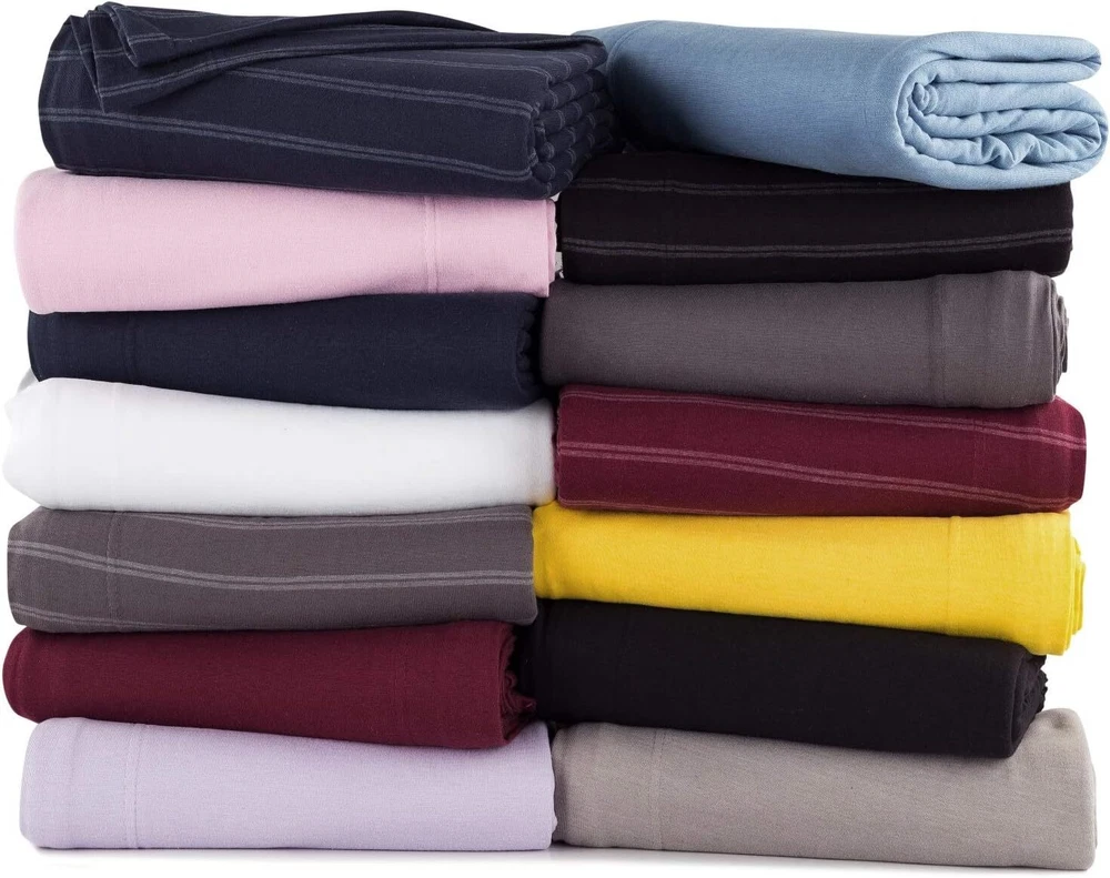 Cotton, Polyester SOFT AND COZY: Top quality combed cotton is knitted into a jersey fabric. As soft and cozy as your favorite t-shirt. PERFECT WEIGHT: 170 Gram Per Square Meter, 5 Ounces Per Square Yard. To keep your body warmer in the winter and cool in the summer so you can sleep comfortably in them year round. THE LOOK: It looks just as good as it feels. We offer 3 solids and 3 stripes to mix and match as you please. Fits any style and gives outstanding look in your bedroom. Coordinating flat sheets and pillow cases are available. RIGHT BLEND: 80% Combed Cotton and 20% Polyester for durability, flexibility and easy care. Machine wash with cold water, Tumble dry low, do not use bleach, remove promptly. FULLY ELASTICIZED fitted sheet is designed to hug your mattress.
