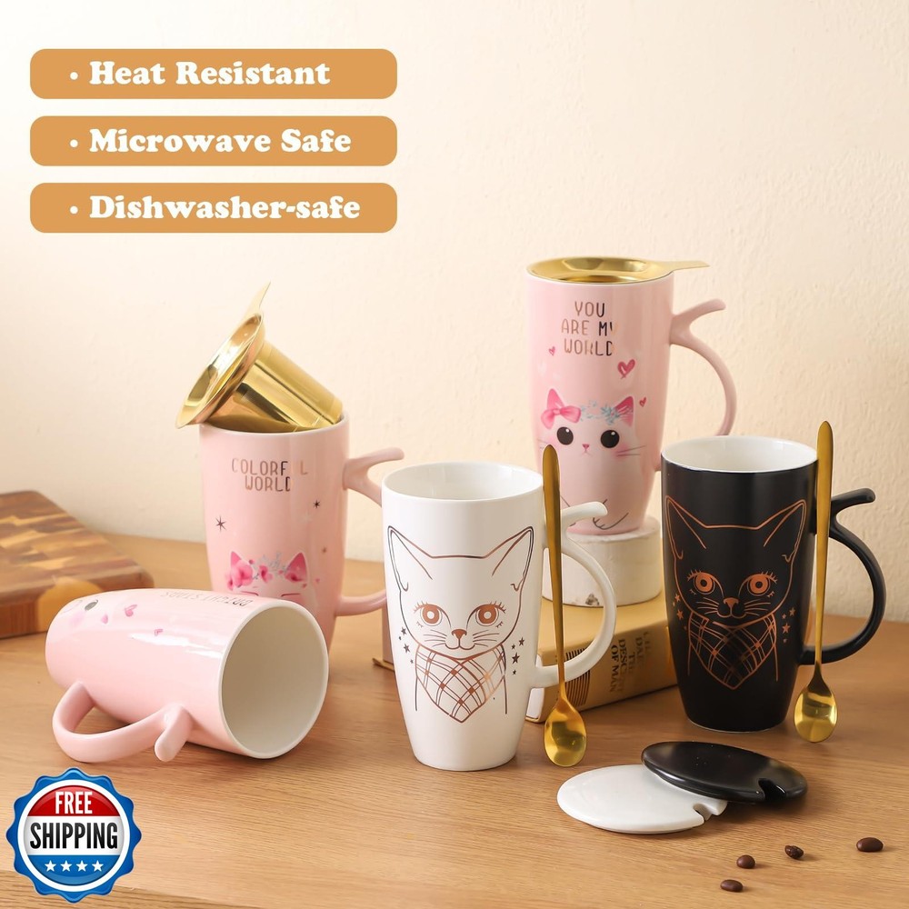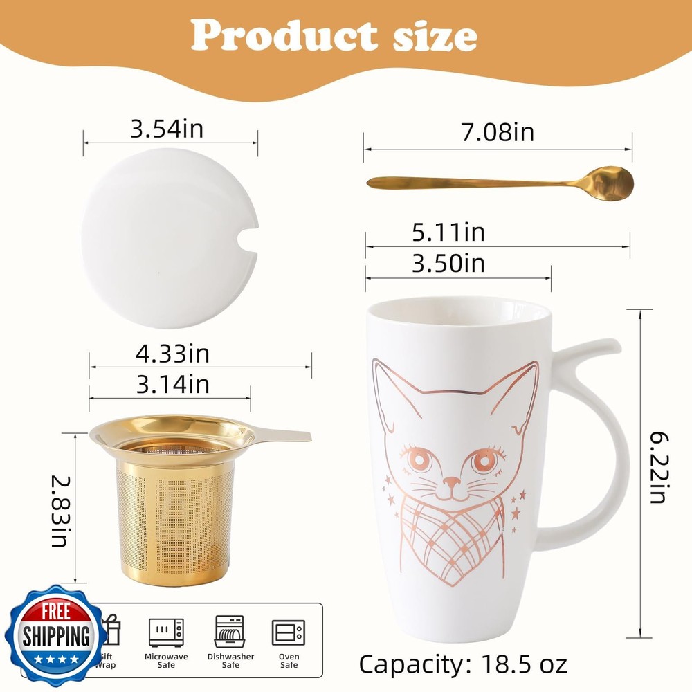 This adorable cat-themed tea mug is a game-changer! The 20oz ceramic design is both stylish and practical, featuring a leak-proof lid, sturdy steel infuser, and handy spoon. Perfect for brewing loose-leaf tea or coffee—microwave and dishwasher safe for easy cleanup. Cat lovers will adore the elegant gold-and-white design, making it a fantastic gift. Highly recommend for anyone who enjoys a hot drink with a cute touch!