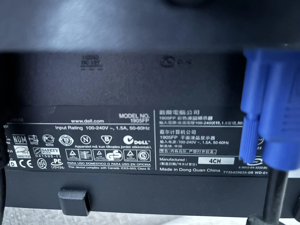 Worked during most recent use DELL 1905 FP UltraSharp LCD Monitor About the Item This sale includes a Dell 19-inch UltraSharp LCD 1905FP Black monitor, stand and power cord. This Dell UltraSharp flat-screen computer monitor is 19 inches diagonally, and its 1280x1024 pixels of resolution give a sharp, clear picture every time you turn on the computer. At work or at home, the Dell model 1905FP boasts an 800:1 contrast ratio, enhancing black and white levels to create a clear display for office work or for relaxing and watching a movie at home. You will not be limited in viewing with the pivoting and tilting base of this Dell 19-inch monitor, which allows for a comfortable angle no matter the position of the monitor itself. Complete with four USB 2.0 ports, you can rest assured that this monitor has the ability to easily connect to not just one but several devices, making it possible to easily enjoy a dual-screen visual experience. Specifications: VGA and DVI Ports Tilt, Rotate, Swivel Black Color 12V DC Input for Soundbar Speakers 4-Port USB Hub 1280 x 1024 Resolution Swivels and tilts (see photos) Sturdy base Photos are of the exact items you will receive. Please review them carefully - they are part of the description - and ask any questions before you buy. Item is sold "as is." THIS COMES FROM A SMOKE-FREE AND PET-FREE ENVIRONMENT.