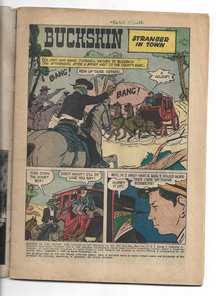 Your buying the exact comic listed below. Name: BUCKSKIN Issue & year: #1011, July 1959 Publisher: Dell (Four Color) Condition: F/VF, Comic is fully intact with no loose pages. Back cover some scribbling top of cover and front cover has a price in ink marker from previous owner. Take my grading with a grain of salt as I'm not a Grader, Comic could be better or worse but I think I'm doing good as I have no complaints. NOTE: MOST OF MY PRICES ARE BELOW CBG VALUES OR WHAT YOU MIGHT FIND IN A COMICBOOK STORE. Comic is bagged with backing board. Comics are mailed securely in a cardboard envelope. We offer combined shipping on all purchases. Use this to your advantage by purchasing multiple items and paying only a single shipping charge. It is usually more beneficial to make purchases this way. INSTRUCTIONS: In order to access combined shipping please make your purchases on Ebay.ca and from a Desktop computer. Go to Ebay.ca and it should give you the option to "Add items to cart" after doing so you simply go to checkout and "Request invoice from seller". This will prompt your commitment to the purchases and allow me to revise the invoice to allow you to enjoy the shipping discounts. SHIPPING BY CANADA POST. Ships from Stellarton, Nova scotia, Canada Robert Jollimore