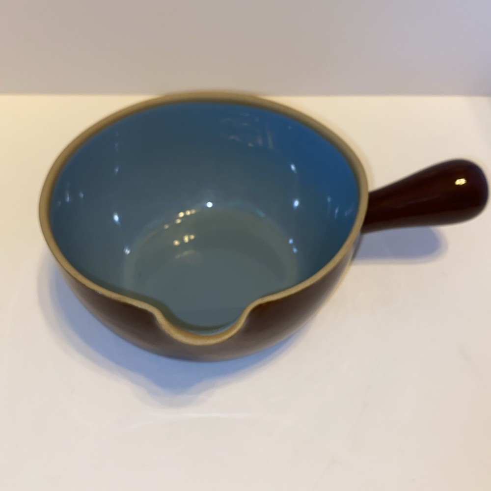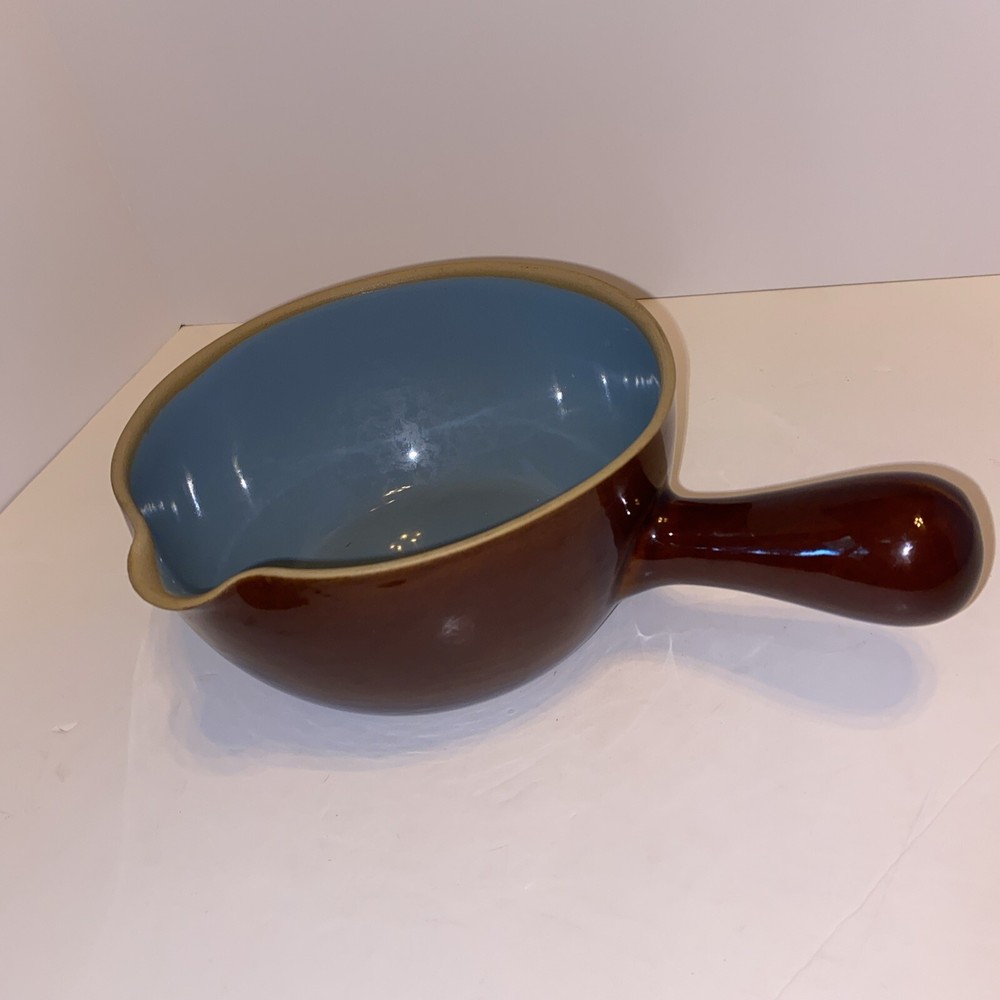 HomeDENBY Stoneware 2-Pt Cooking Sauce Gravy Pot with Spout in Sky Blue & Brown