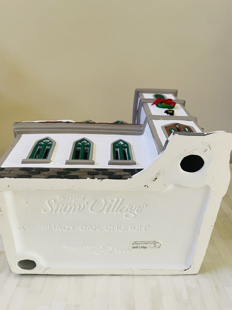 Add a touch of traditional Christmas charm to your holiday decor with this delightful piece from the Department 56 Snow Village collection. The "Shady Oak Church" is a beautifully painted, multicolored figurine that captures the essence of the festive season. Crafted between 1994 and 1996, this original piece is a must-have for collectors and enthusiasts of seasonal themes. Used, see the photo
