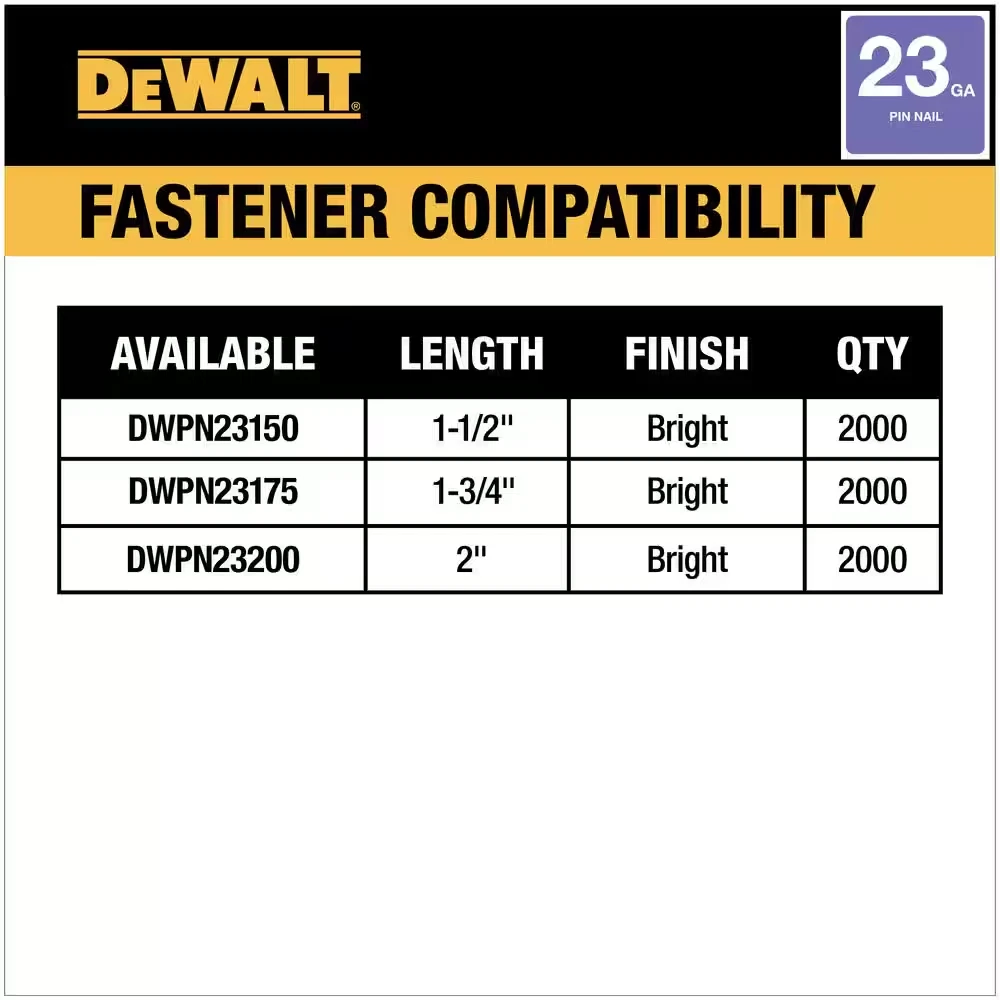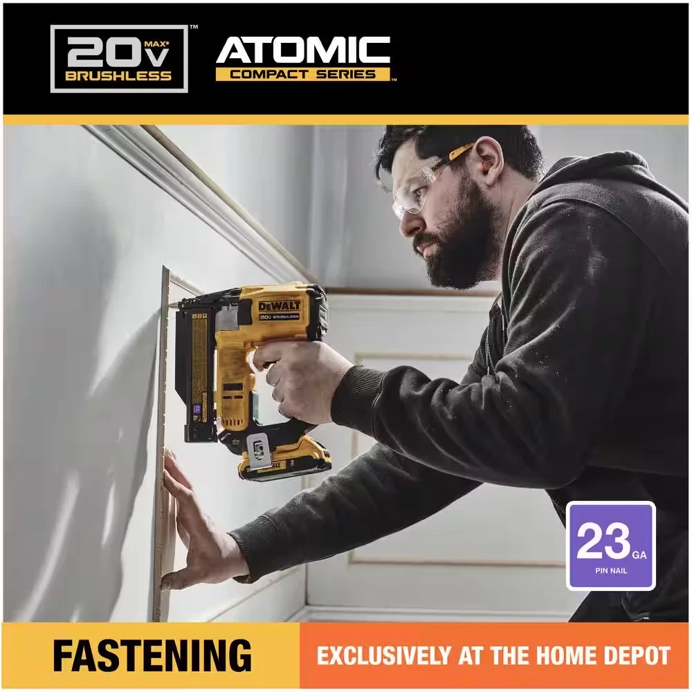 DEWALT ATOMIC 20V MAX Cordless 23-Gauge Pin Nailer Kit with 2.0Ah Battery