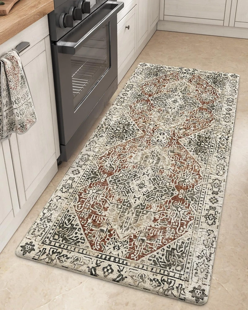 DEXI Anti Fatigue Kitchen Mats for Floor, Cushioned Kitchen Rugs Thick Long Non Skid Waterproof Kitchen Runner Rug Boho, Comfort Mat for Standing Desk Office, Sink, Laundry, 23"x59", Boho Brown/Multi Product Details Size: 59"L x 23"W x 0.4"Th Color: Boho Brown/Multi Brand: DEXI MPN: Does not apply UPC: Does not apply EAN: Does not apply Color: Boho Brown/Multi Brand: DEXI Special Feature: Waterproof, Fade Resistant, Stain Resistant, Non Slip, Washable Pattern: Floral Product Care Instructions: Hand Wash Only Color: Boho Brown/Multi Brand: DEXI Special Feature: Waterproof, Fade Resistant, Stain Resistant, Non Slip, Washable Pattern: Floral Product Care Instructions: Hand Wash Only Item Thickness: 0.4 Inches Product Dimensions: 59"L x 23"W x 0.4"Th Manufacturer: Derxi Number of Items: 1 Item Weight: 5 pounds Country of Origin: China Date First Available: August 15, 2024 Premium Texture : DEXI kitchen mat is made of sturdy surface and wear-resistant bottom design, it ensures long-term use in high-traffic areas. The thickness is 0.4 inches (10mm), which takes into account durability and comfort. Please pay attention to the thickness before ordering the kitchen rugs Ultimate Comfort Experience: The anti fatigue mats for kitchen floor relieve fatigue well, especially suitable for people who are cooking in the kitchen or standing for a long time, providing exceptional support for feet, knees and backs, and improving overall comfort Anti-Slip Design: The top has a textured design, the kitchen runner rug is crafted with non-slip backing to ensure safety on various floors, preventing from slipping or falling. Make sure the floor is clean and dry before use to achieve the maximum anti-slip effect Easy to Clean: Our kitchen mats for floor are ease of cleaning and fade resistant, simple wipe with a damp cloth or sponge, or sweep away dirt and dust. The cushioned kitchen floor mat will continue to provide excellent performance after cleaning, allow you to have more time to enjoy yourself Versatile Use: The boho kitchen rug features floral pattern which blends perfectly with home decoration, the unique design and comfortable standing mat complement each other, suitable for most occasions and multiple areas, such as kitchen, laundry room, or office